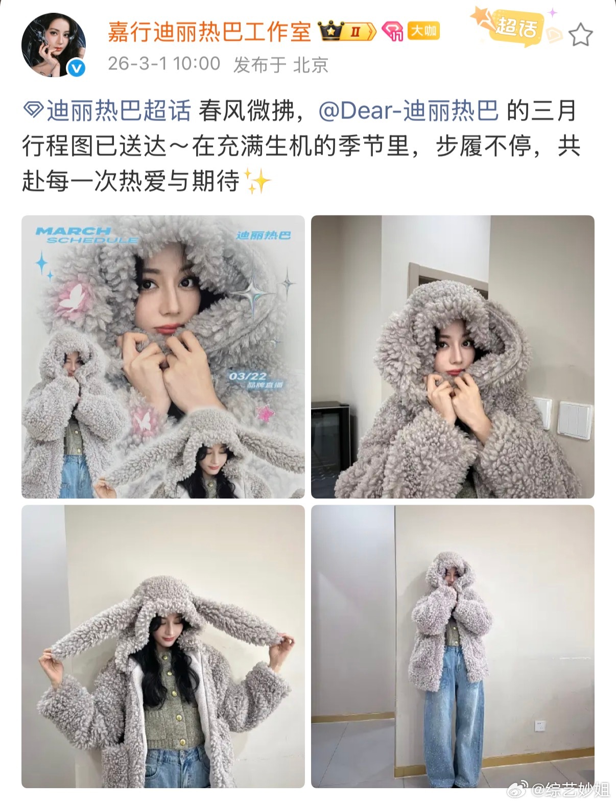 热巴的三月行程图来啦!3.3巴黎时装周看秀热巴的三月行程图热巴巴黎时装周看秀行程