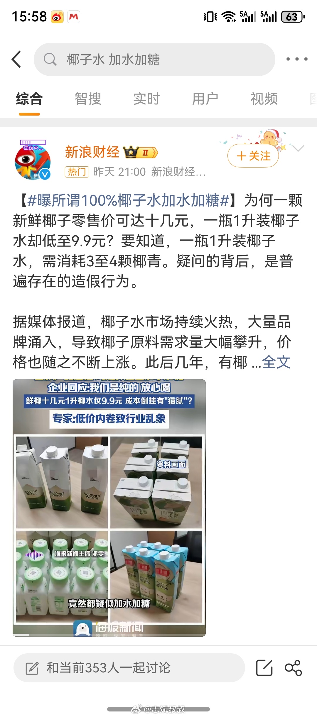 椰子水 加水加糖 不会有人还以为椰子水是纯的,不加水不加糖的吧。