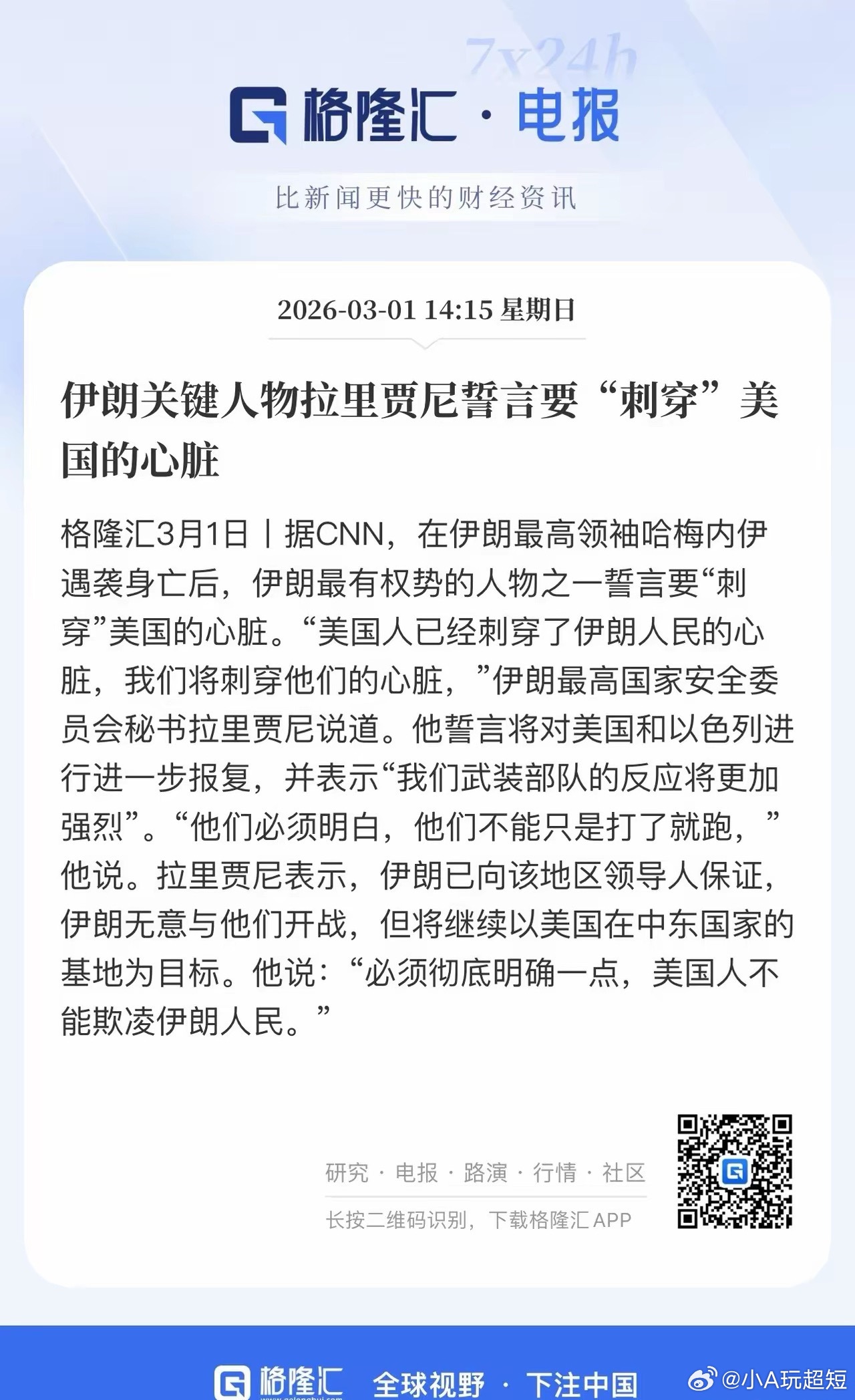 佩泽希扬、拉里贾尼纷纷露面发言,伊朗被斩杀的核心层迅速完成补位!现在问题的关键又回到:佩泽希扬和拉里贾尼是否一条心。显然哈梅内伊在牺牲前,一步搞平衡的妙棋变成了臭棋,哈梅内伊战前有言他倒下了战时指挥权交给拉里贾尼,当时就有军师预计哈梅内伊防着佩泽希扬,最神奇的是这一次高层斩首中这两个最可能登顶伊斯兰权利巅峰的男人都存活下来了!不难推测有一方已经倒向美国。顺逻辑推理是佩泽希扬亲美事前有消息躲过一劫,拉里贾尼遵循备胎原则没有参会躲过一劫。但这个逻辑太通顺了,通顺到所有人都不相信,然后就换了一个版本:拉里贾尼是杀死义父董卓的大反派吕布,佩泽希扬反而是没有实权的东宫太子。…