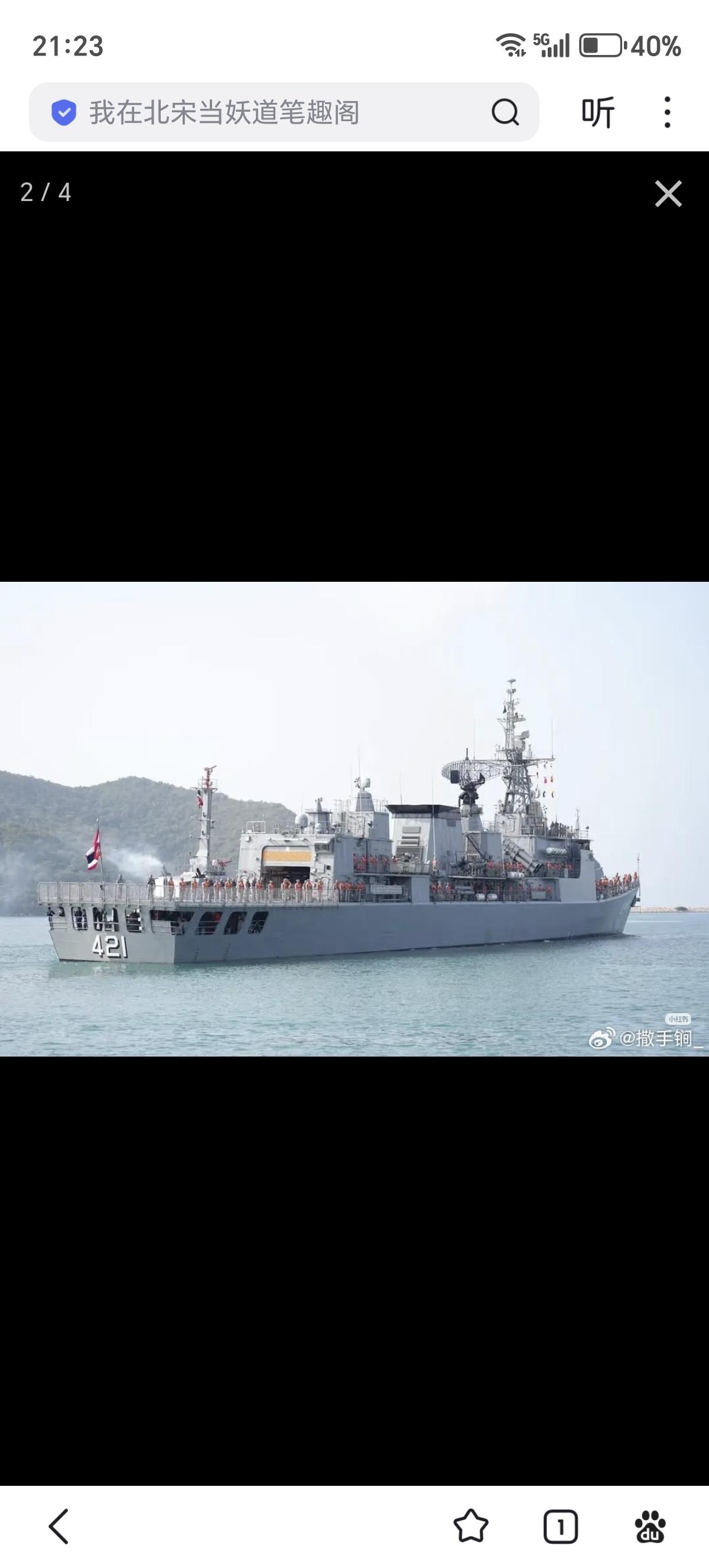 泰国海军421“纳来颂恩”号护卫舰起航前往澳大利亚,参加多国联演和国际舰队检阅。 此舰为沪东造F25T型首舰,1994年12月服役。满排2985吨,最大航速32节。在武器配置方面,最初装中国造76A式双37副炮,其余均为西方武备。后来双37炮也被英国单30炮取代。