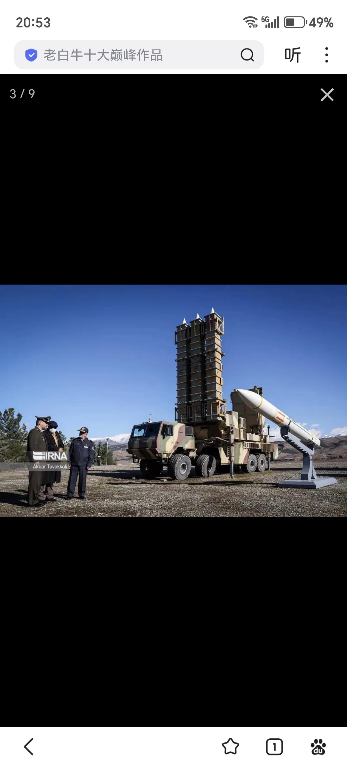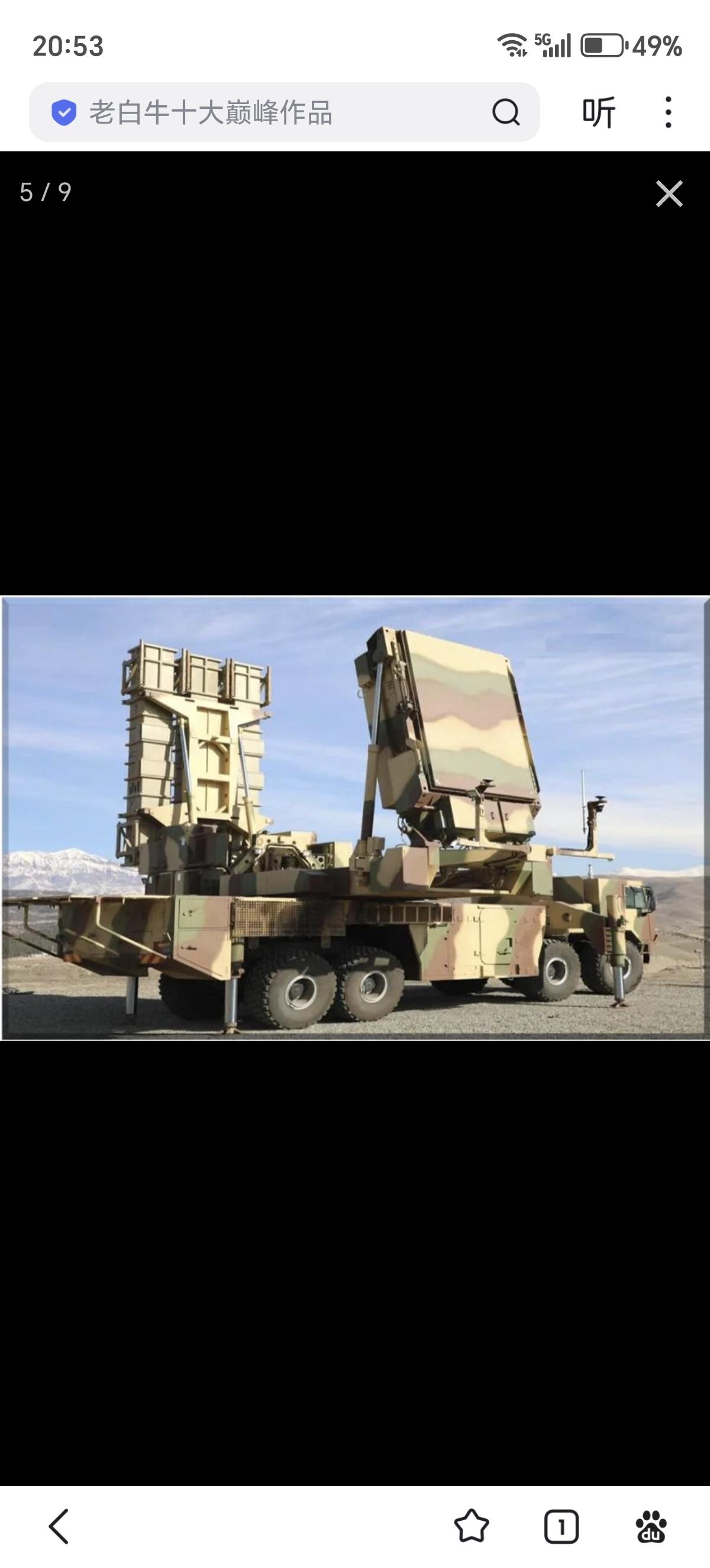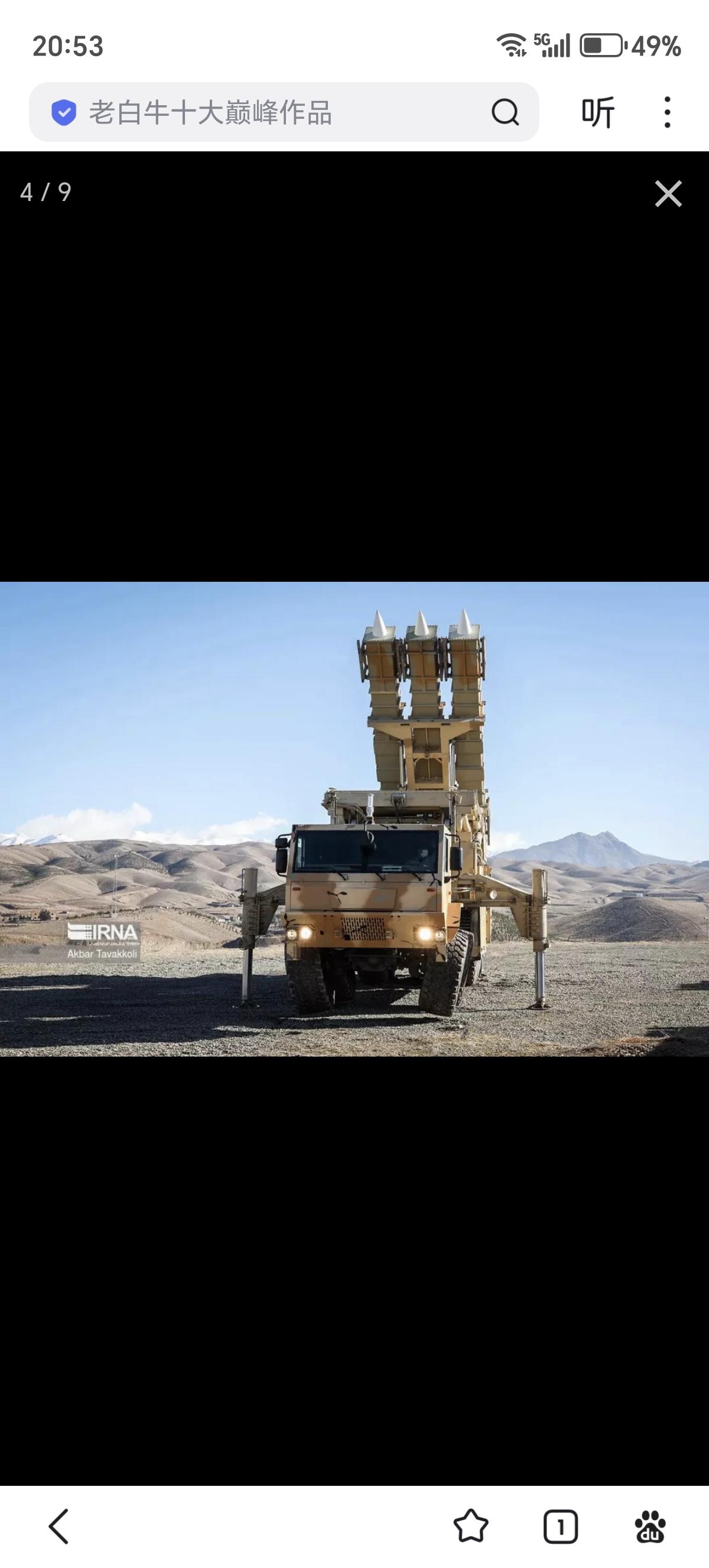美军发布的打击视频中还打到了一辆稀罕货,就是伊朗的愿望(Arman)/战术猎人防空导弹系统。愿望远程防空导弹系统采用的是伊朗国产的Zafar型8X8卡车,该车空重约21吨,有效载荷约24吨,长度约12米,宽度约2.7米,高度约3米,安装了约400马力柴油机,最大公路速度约90千米/时,续航里程约800千米,坡度60%,边坡30%,可跨越约0.6米垂直台阶或2米壕沟,涉水深1.2米,主要是更换了车头,增加了外伸式的液压支撑。 愿望远程防空导弹系统配备有集成雷达和导弹的转塔,可360度旋转,能够同时探测180千米范围内24个目标,同时攻击120千米半径内的6至12个目标。该系统有两种配置,一种是厚重的Najm型S波段无源相控阵雷达,另一种则是较薄的Joshan型X波段有源相控阵雷达。Najm-804型无源相控阵雷达于2019年春季亮相,天线增益36分贝,最大发射功率6.4千瓦,方位角波束角2.7度,波束俯仰角3.2度,目标探测距离达到200千米,可在150千米外探测2.4平方米截面的战斗机和攻击无人机等目标,探测概率为0.8,虚警概率为10-6,最多可同时跟踪100个目标。在制导导弹时雷达转向目标方向,可以同时制导6枚导弹探测、拦截6个目标,还可以探测85千米外的隐身目标,并在45千米内将其摧毁。Joshan型有源相控阵雷达还没有性能披露。似乎这两种雷达分别配属伊朗军队和革命卫队。 愿望远程防空导弹系统可以发射猎人-3F防空导弹,这是猎人-3导弹的改进型。猎人-3战斗部90千克,射程120千米、最大射高27千米。采用尖卵形头锥+带有两侧贯穿至弹底导线肋条的圆柱形弹体+弹尾4片X型布局梯形小展弦比边条翼+梯形全动尾舵的气动布局,制导方式采用中段惯导+末段无线电指令/半主动雷达制导。有趣的是这种防空系统还能够发射猎人-3N防空导弹,其中部弹翼上移,可能更强调机动性。另外在宣传片中还出现了猎人-2防空导弹全重为1011千克,战斗部90千克,最大射程75千米,最大射高27千米,最大速度为4马赫。采用尖卵形头锥+圆柱形弹体+4片X型布局带前伸边条的梯形小展弦比边条翼+五边形全动尾舵的气动布局。这样一种系统就可以打两种不同射程导弹,可以视作是三月十五日防空系统的机动版本,伊朗人宣称3分钟能撤出阵地。重点突出自带雷达打了就跑提升生存性,但遇到美国和以色列这种级别的对手,空防被轻易突破,也只能被击毁了。