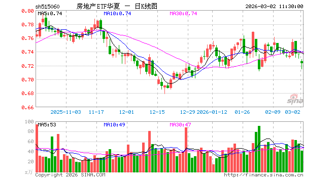 3月2日,截止午间收盘,房地产ETF华夏(515060)跌1.90%,报0.723元,成交额3024.25万元。房地产ETF华夏(515060)重仓股方面,保利发展截止午盘涨0.59%,张江高科跌4.12%,万科A跌1.65%,招商蛇口涨0.00%,海南机场跌3.29%,衢州发展跌2.68%,万通发展跌0.40%,新城控股涨2.16%,滨江集团涨0.80%,先导基电跌3.09%。