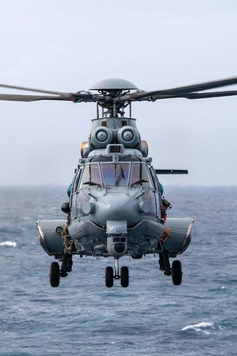 近日,法国空天军发文称,一架EC725直升机在法国海军花月级护卫舰上完成了触舰复飞演练。