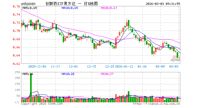 3月3日,创新药ETF易方达(516080)开盘涨0.00%,报0.634元。创新药ETF易方达(516080)重仓股方面,药明康德开盘涨0.29%,恒瑞医药涨0.29%,华东医药涨0.23%,复星医药跌0.15%,科伦药业跌0.07%,百济神州涨0.41%,长春高新跌0.14%,康龙化成涨0.18%,泰格医药涨0.00%,艾力斯跌0.35%。