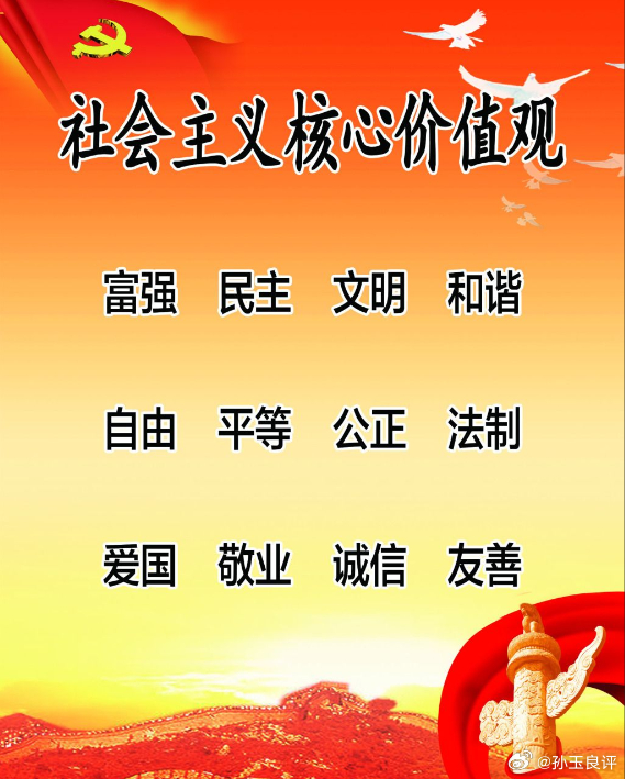 【当代仁政是什么?孙玉良:从上到下真正践行24字社会主义价值观】当代仁政是什么?我认为就是从上到下,把富强、民主、文明、和谐、自由、平等、公正、法治、爱国、敬业、诚信、友善这24个字,真正干到骨子里去!我强调一个“真”字,不是假践行,不是空许诺,不是纸上谈兵,而是从党员、干部到群众真的人人这么干,必定是国家富强,人民幸福。十八大那年,这24字一亮相,就成了全党全国的行动纲领。党和国家领导人反复强调要让它像空气一样,无所不在、无时不有。这些年也确实干了一些实事:脱贫攻坚战硬仗打赢,近1亿农村贫困人口全部脱贫;反腐败风暴雷霆万钧,从中央到地方,老虎苍蝇一起拍;共同富裕大步推进,规范资本无序扩张;文化自信更是爆棚,红色资源活起来,文明和谐在城乡扎根。婚恋文明、职场文明、出行文明,也确实在往前推进。但人们还有许多不满的地方,我们做得还很不够。如国企里“近亲繁殖”还时不时冒头,铁饭碗成了少数人世袭的资本,岗位为谁量身定做,资源往亲友圈里流。这就很不“平等”,很不“公正”,很不“和谐”,年轻人一看,寒心啊!努力奋斗换不来公平机会,这不行;再如,从上到下利己主义盛行,某些人权力无约束,某些领域特权横行,这也不符合社会主义核心价值观。光空喊口号不行,得用制度把这24个字规范一下,不这样做不行。否则就是阴奉阳违、形象工程、水分数据、表面文章,嘴上喊“仁政”,实际上害国害民。社会主义不是某些人世袭的特权制度,是14亿中国人民的事业,是让每一个人通过努力都能享受发展红利的实践!那些把国企当私人俱乐部,把稳定当僵化铁饭碗的,就背离了自由平等公正法治,伤了爱国敬业诚信友善的根!看看那些被同情的罪犯案子,难道不值得反思吗?罪犯坐牢或是被处以极刑,本应拍手称快,但偏偏有的罪犯,被民间视为“英雄”。这说明我们的法治没有搞好。真正践行社会主义核心价值观,应该用24字把国家社会个人拧成一股绳,人民当家作主,全过程民主落地,司法公正,共同富裕路上一个都不掉队,让自由平等公正法治见真章,这才叫实打实的仁政!不真干,代价惨重;民心散了,社会就乱;活力没了,复兴就卡壳。形式主义继续,年轻人就寒心,人才就外流,创新就卡脖子。特权残余不除,公平正义就打折扣,14亿人的凝聚力就打对折。当“铁饭碗”变成少数人垄断的资本,当资源固化成阶层待遇,那就背离了公平正义的基本原则!反过来,真从上到下干起来呢?民心像铁板一块,发展就像火箭起飞。尤其是为官的,要把为民造福作为最大政绩,实干担当才是硬道理,而不是拍上级的马屁,巴结逢迎。领导带头干,从中央到地方,一级抓一级,一级带一级,民风自然就好转。制度要跟上,回避制度、透明招聘、常态监督、专项排查,堵死一切后门;要发动群众广泛参与,每个人都要从爱国敬业诚信友善做起,小事不放过,大事不含糊。要从娃娃抓起,从学校抓起,让24字内化于心、外化于行。真正的社会主义,就是要让勤奋的人都有出头机会,就是要把为人民服务从口号变成血肉。要用市场+制度+教育破解难题,用“政绩观教育+追责问责”砸烂形式主义那套假把式。反腐不停步,让廉洁文化走进千家万户;共同富裕不松劲,城乡差距要一步步拉平;法治中国建起来,要让群众看得见摸得着公平正义。这样做,国家必定强大,人民必定幸福,还有哪个国家敢欺负我们呢?当代仁政从来不是天上掉下来的馅饼,是亿万中国人用汗水和行动干出来的。24字不是冷冰冰的标语,而是热腾腾的民心工程。干好了,中国式现代化就势不可挡,中华民族伟大复兴就水到渠成。人民的眼睛是雪亮的,谁真干,谁假干,一目了然。让那些假仁政、假价值、假上行的,早点滚蛋!让真践行、真落地、真见效的,站到最前面!我点醒的,不是别人,正是我们每个人。当代仁政,不是墙上贴的口号,而在滚烫的实践中!