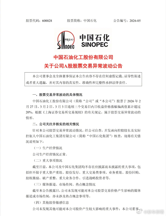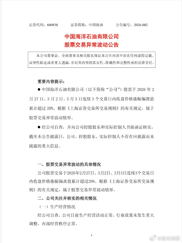 中国石油发布公告 中国石油公告:连续3个交易日股价异常波动,公司经营正常,无应披