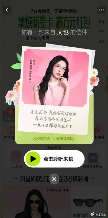 周也天猫全明星春日来新谁懂啊 周也的春日语音也太治愈了吧 上淘宝搜周也 集星卡就