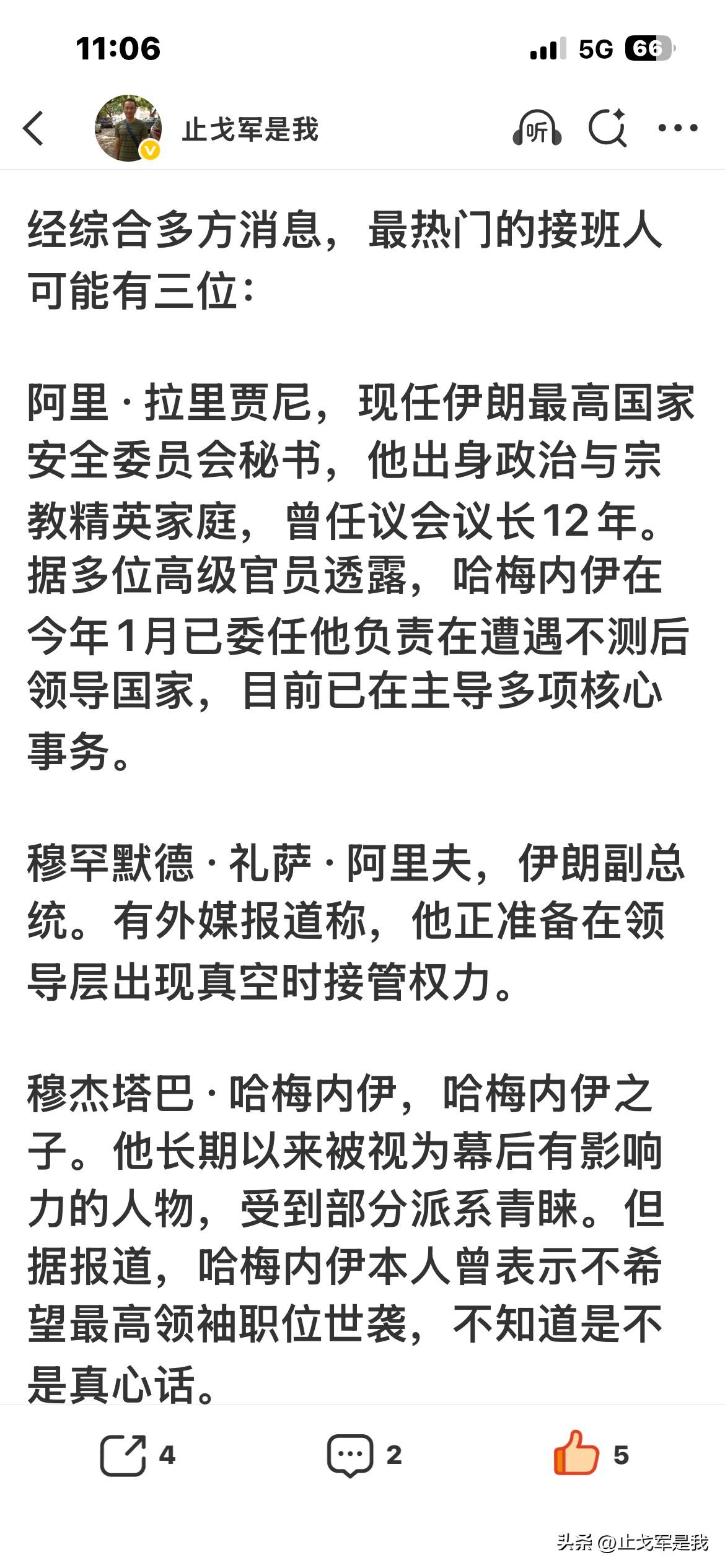 哈梅内伊之子当选伊朗最高领袖 哈梅内伊离世后,我迅速预测出三位可能的接班人,其中便有他的儿子,同时排除了现任总统成为伊朗最高领袖的可能性。 伊朗随后选出了三人领导集体,总统位列其中,很多人便认为他会成为最高领袖。实际上,他早已被边缘化,根本不可能当选伊朗最高领袖。 当时很多人还嘲笑我的预测,现在被打脸了吧! 鉴于哈梅内伊之子成为伊朗新一任最高领袖,我们可以预测,伊朗对美以两国的军事反击不会很快结束。 不信的话,咱们拭目以待! 附上我当时的预测文字
