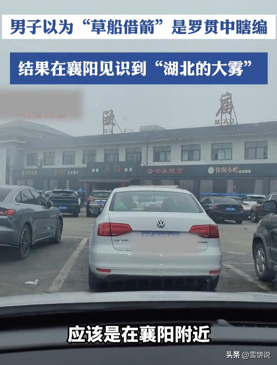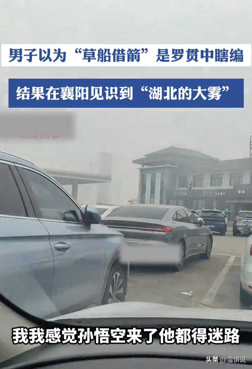 这下彻底信了!湖北襄阳,男子开车时经过服务区,刚好赶上大雾,看到眼前的场景,男子当场明白过来,以前以为草船借箭是罗贯中瞎编的,亲眼看见才知道这是真的。网友:这才哪到哪 早就听说湖北的雾大,但真没想到能大成这样!车窗外,那台原本能穿透黑夜的疝气大灯,此刻在湖北襄阳欧庙服务区的路面上,只能勉强照亮一两米的范围。那种白,不是云烟的缥缈,而是一种带有实质压迫感的"厚重"就像有人拿了一床巨大的棉被,直接把整个世界给罩住了。 对于一个开惯了宽敞公路的外地男子来说,这种景象简直是在挑战空间感知力的极限。远处的路标?看不见。对面的车轮廓?模糊一片。 甚至几米开外的护栏,全部被一块巨大的、惨白的布瞬间缝合。能见度低到什么程度?说句不夸张的,你站在车头都看不清车尾在哪儿。 他不得不把车滑进服务区,跳下驾驶位。那一刻,寒气裹挟着浓得化不开的水汽扑面而来,整个人像是被塞进了一个巨型加湿器里。这种失去方向感的混沌,让他产生了一种极其荒诞的错觉:这哪是2026年的高速公路,这分明是公元213年的长江江面! 他站在冻人的雾气里,脑子里反复重演着《三国演义》里草船借箭的画面。以前总觉得罗贯中这老先生为了给诸葛亮贴金,下笔太狠,把雾写得像神迹,什么"大雾漫天"、什么"对面不相见",听着就像是为了剧情需要硬编出来的。 "以前以为全是编的,"他对着手机镜头感慨,声音在浓雾里闷声闷气的,"现在亲眼见了,我才信那是真的。" 试想,于这“对面不相见”的极端之境,曹操若贸然出兵,那可真是匪夷所思、荒诞至极了。如此形势下,他断不会行此莽撞之举。别说射箭了,连敌人在哪儿都看不清,这仗还怎么打?诸葛亮那是真的算准了天时地利,这哪是借箭,这分明是在利用大自然给曹操设的局! 别说两千年前的曹阿瞒了,他自嘲道,这种天气就算韩信复生也得抓瞎,孙悟空来了都得老老实实开导航。这不是怂,这是人类在面对大自然硬约束时,最原始、最合理的战术恐惧。你再牛,你能牛得过老天爷? 这种认知上的坍塌,其实挺有意思。我们习惯了现代社会的通透和秩序,总觉得古书里那些奇绝的桥段是文学修饰,甚至觉得是一种神化。什么"借东风"、什么"大雾锁江",听着都像是为了把诸葛亮吹成神仙故意夸张的。 可真实的历史逻辑往往就藏在这种被我们忽视的自然常态里!事实上,罗贯中确实"移花接木"了,历史上那次著名的受箭,主角其实是建安十八年在濡须口的孙权。 当时孙权驾着大船观察曹军,被射成了"刺猬"。船身一侧因积箭过多,重心失衡,倾斜角度不断增大,于汹涌波涛间摇摇欲坠,似下一刻便会倾覆于茫茫沧海。孙权不仅没慌,还玩了一手物理平衡掉转船头,让另一面也受箭,"箭均船平"后再悠哉返航。这才是真正的历史原型。 罗贯中能把这事儿改得天衣无缝,底气就来自于湖北、安徽这一带水网密布的地理属性。长江中游,河流湖泊扎堆,水汽本就充沛,再加上秋冬季节巨大的昼夜温差,这种强浓雾是老天爷给这片土地定下的"底色"。说白了,这种天气在当地根本不稀奇,稀奇的是外地人没见过。 有趣的是,男子的这段感叹在社交媒体上引发了一群湖北网友的"凡尔赛"现场。有人留言说:"这也叫大雾?我有年坐火车,靠窗坐着都看不见铁路边的隔离网。" 更有甚至者追溯到了三十年前,说当年早晨七点上学,那叫一个"伸手不见五指",纯凭生物钟和肌肉记忆在走。在本地人眼里,这不过是自然的日常。 在外地人眼里,却是对认知的降维打击。这大概就是历史最迷人的地方:那些被印在书本上的枯燥文字,往往需要一次身体性的切肤体验,才能重新焕发出生机。 我们总是高估自己的经验,低估未见之事的真实感。总觉得没见过的就是夸张,没试过的就是虚构。直到你像这个男子一样,被一场跨越千年的大雾堵在服务区,冻得瑟瑟发抖,能见度低到怀疑人生。 那一刻你会猛然发现,历史书写或许会有艺术加工,笔墨或许会带有修饰,但那个孕育过英雄与诡计的自然舞台,其实两千年来从未真正改变过。诸葛亮能借到箭,靠的不是神机妙算,靠的是他真的懂这片土地!