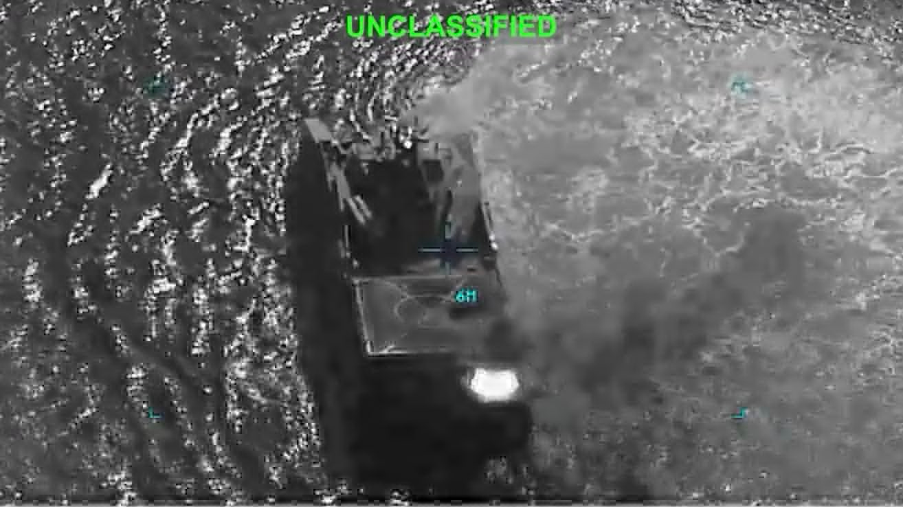美伊以冲突 美国袭击伊朗海军的沙欣·索莱曼尼级护卫舰“烈士·赛义德·谢里扎伊”的新图像。美军已经击沉了20多艘伊朗舰艇。