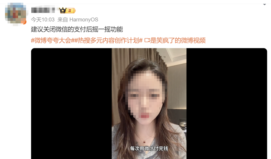 日前,“建议关闭微信支付后摇一摇功能”的话题登上热搜,起因是一位博主发布视频揭露了微信支付后“摇一摇”功能的潜在风险。