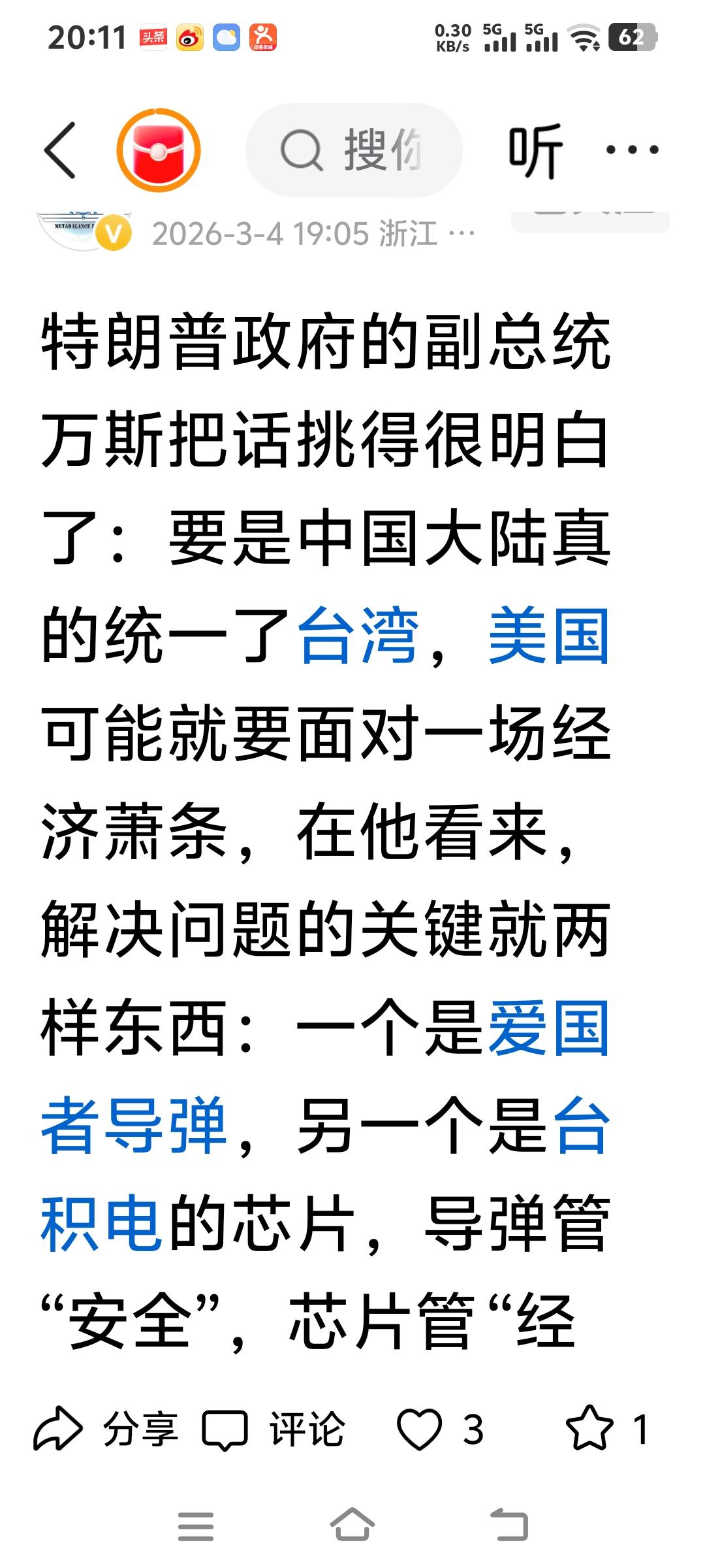 这次中东撤侨行动在台湾岛内引发诸多讨论。台“中时新闻网”指出,赖当局无力撤离滞留中东的台湾民众还死要面子。美以袭伊战火正酣,大陆开放包括港澳台同胞在内的中国公民撤离登记,可台当局外事部门却称寻求大陆协助有风险。实际上是台湾不具备“撤侨”能力,只能让民众自求多福。 同时,撤侨新规中需出示台胞证才能获协助引发争议。有人不满没台胞证就被排除,却忽略身份认同问题。国际上撤侨本就需有效证件证明公民身份,大陆认可台胞证是承认持证者为中国一部分。此前乌克兰、苏丹撤侨也遵循类似规则,身份与权益始终挂钩。
