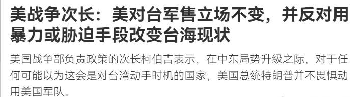 陷在中东还不算,美国竟然对我们放狠话,绝不允许我们轻举妄动!3月4日,根据法新社报道,美国战争部负责政策的副部长柯伯吉表示,在中东局势升级之际,对于任何可能以为这会是对台湾动手时机的国家,美国总统特朗普并不畏惧动用美国军队。 说白了,美国深陷中东泥潭还敢对我们放狠话,扬言绝不允许我们在台湾问题上轻举妄动,表面看是霸权强硬威慑,实则是色厉内荏的虚张声势,更是对中国内政的粗暴干涉与底线挑衅。 要知道,这可不是普通的外交喊话,而是美国在自身战略全线吃紧下的垂死叫嚣。3月4日法新社报道,美国战争部负责政策的副部长柯伯吉公然表态,特朗普不畏惧动用美军阻止我们在台湾问题上的行动。可此刻的美国,在中东被伊朗拖入全面消耗战,霍尔木兹海峡封锁、石油危机爆发、美军基地接连遇袭、导弹库存告急、军工企业被迫连轴转生产,三线冲突早已把美军拖得筋疲力尽,战略资源与兵力部署严重透支,根本无力再开辟第二战场。 可这绝非美国真有双线作战的底气,而是戳破了它极端自私的霸权双标。美国一边在中东制造战乱、生灵涂炭,一边拿台湾问题对中国指手画脚,把台湾当作遏制中国发展的棋子,完全无视一个中国原则与国际关系基本准则。它从不在乎台湾同胞的安危,只在乎自身霸权利益,所谓“保护台湾”,不过是欺骗“台独”势力、煽动对立的谎言,这种只许自己放火、不许他人点灯的霸道逻辑,容不得任何粉饰。 而美国选择此时放狠话,更是基于铁一般的虚弱现实。它深知自身深陷中东泥潭,正是我们推进统一的有利时机,内心极度恐慌,才急忙跳出来放狠话壮胆,试图靠口头威慑吓退我们,干扰我们的战略节奏。它明明力不从心,却还要装出强硬姿态,本质是害怕中国抓住战略窗口、实现完全统一,打破其苦心经营的亚太霸权布局。 更关键的是,这番威胁狠狠打脸了美国外强中干的真实面目。一个连中东乱局都无力收拾、连基本武器库存都保障不了的国家,居然还想在台海对中国耀武扬威,简直是自不量力。中国的军事实力与反介入能力早已今非昔比,完全有决心、有信心、有能力捍卫国家主权和领土完整,美国的几句狠话,在我们的钢铁意志与强大实力面前,不过是一纸空文。 说实话,这也是对全体中国人民的一次清醒提醒。美国从来不会真心希望中国强大,台湾问题始终是它遏制我们的抓手,指望霸权手下留情、放弃干涉,根本不切实际。我们唯有不断壮大自身实力,牢牢掌握统一主动权,才能彻底粉碎外部干涉与“台独”分裂图谋。 要清楚,台湾是中国不可分割的一部分,解决台湾问题、实现祖国完全统一,是中华民族的核心利益,是14亿中国人民坚定不移的意志,从来不是美国可以指手画脚的事务。历史与现实都证明,任何外部势力干涉中国内政,都注定以失败告终,美国的霸权威慑,动摇不了我们统一的决心。 而未来,随着中国实力不断增强,美国在台海的干涉空间只会越来越小。那些试图阻挡中国统一的势力,只会被历史潮流彻底抛弃;那些沉迷霸权、四处挑衅的行为,终将付出沉重代价。关键转折点就在我们自身,只要我们保持战略定力,统一大业必将如期实现。 说到底,美国深陷中东还对我们放狠话,是霸权衰落前的最后疯狂,是心虚胆怯的拙劣表演。中国绝不会被任何威胁吓倒,祖国完全统一的历史车轮,任何势力都无法阻挡。历史终将证明,玩火者必自焚,干涉者必失败,这是颠扑不破的真理! 以上是小编个人看法,如果您也认同,麻烦点赞支持!有更好的见解也欢迎在评论区留言,方便大家一同探讨。