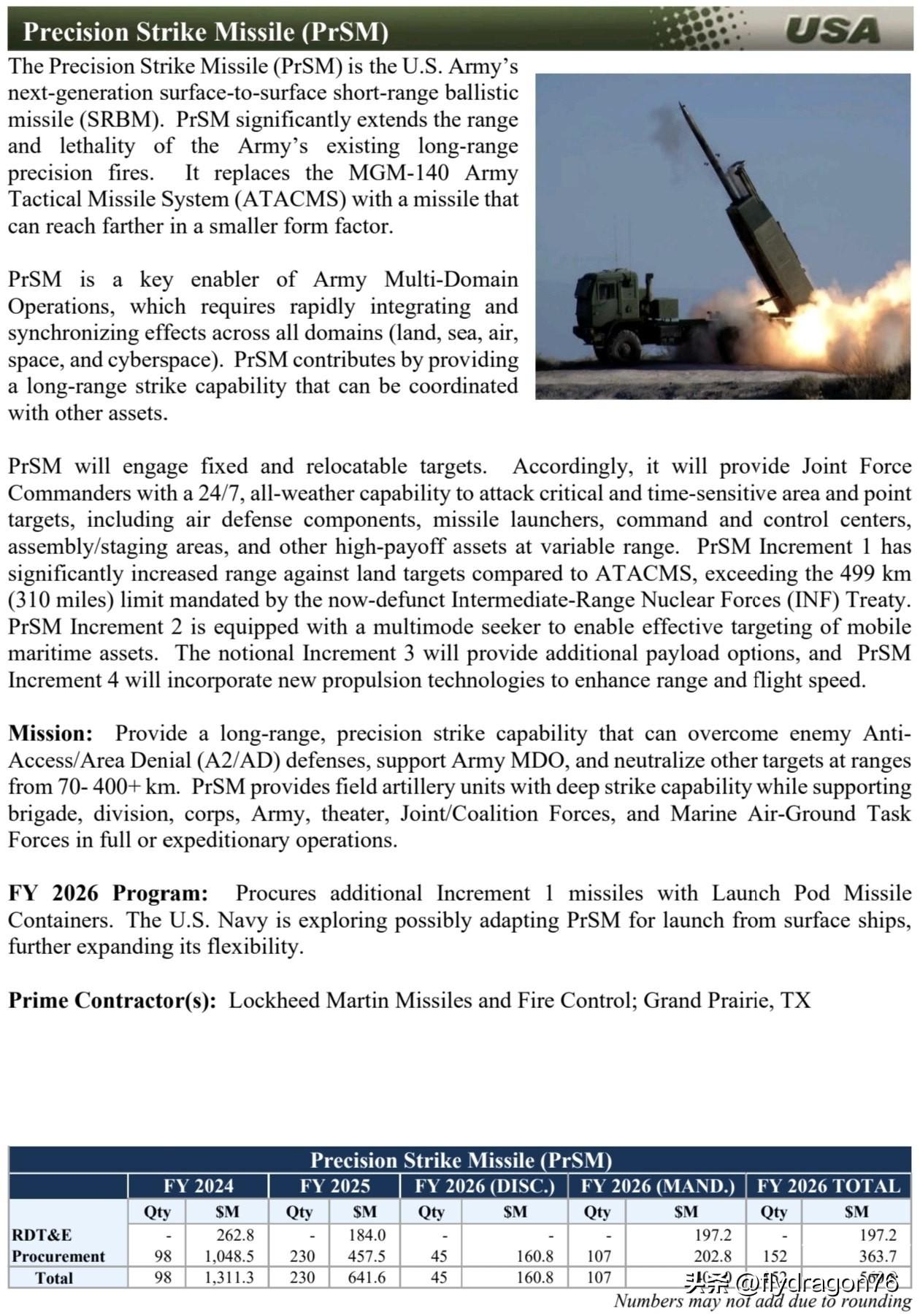 🇺🇸🇮🇷 在“史诗狂怒行动”(Operation Epic Fury)中,美军首次使用了最新的PrSM导弹。 此次对伊朗的发射由HIMARS发射车完成,证实了新型导弹已完全集成到现有的移动系统中。 PrSM导弹的有效射程为500公里,而ATACMS导弹的最大射程约为300公里。 由于PrSM导弹直径更小,因此一个运输发射箱可以装载两枚PrSM导弹,而ATACMS导弹则需要装载一枚。 美军计划采购约4000枚PrSM导弹,预计到2026-2027年,其批量生产速度将达到每年400枚。