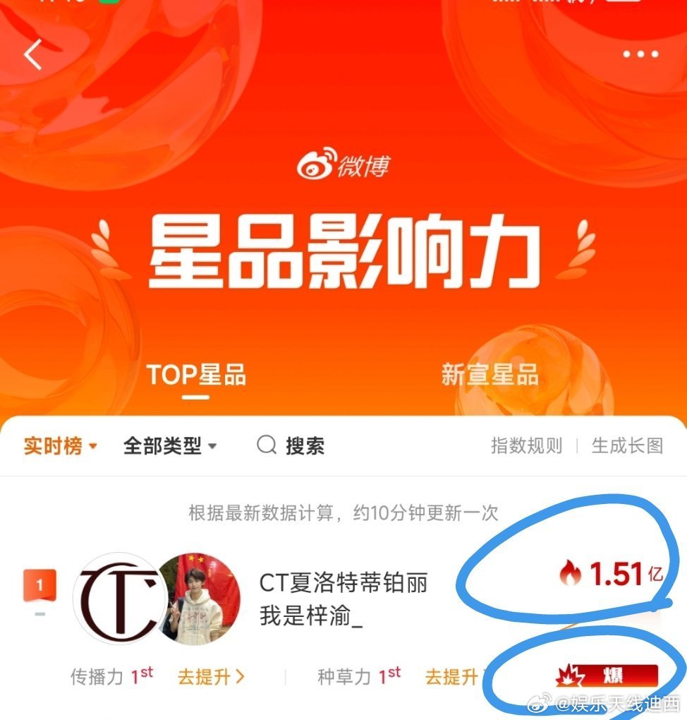 梓渝星品历史第一个爆官宣后不过一个多钟头星品影响力直接冲上顶峰解锁了星品历史上首个爆款高光标识超话也跟着彻底沸腾首小时指数直接破亿 成绩摆在眼前就是底气不用刻意造势 数据就是最硬的证明精准贴合的人群 双向奔赴的信任原来真正的热度 从来不需要多余铺垫
