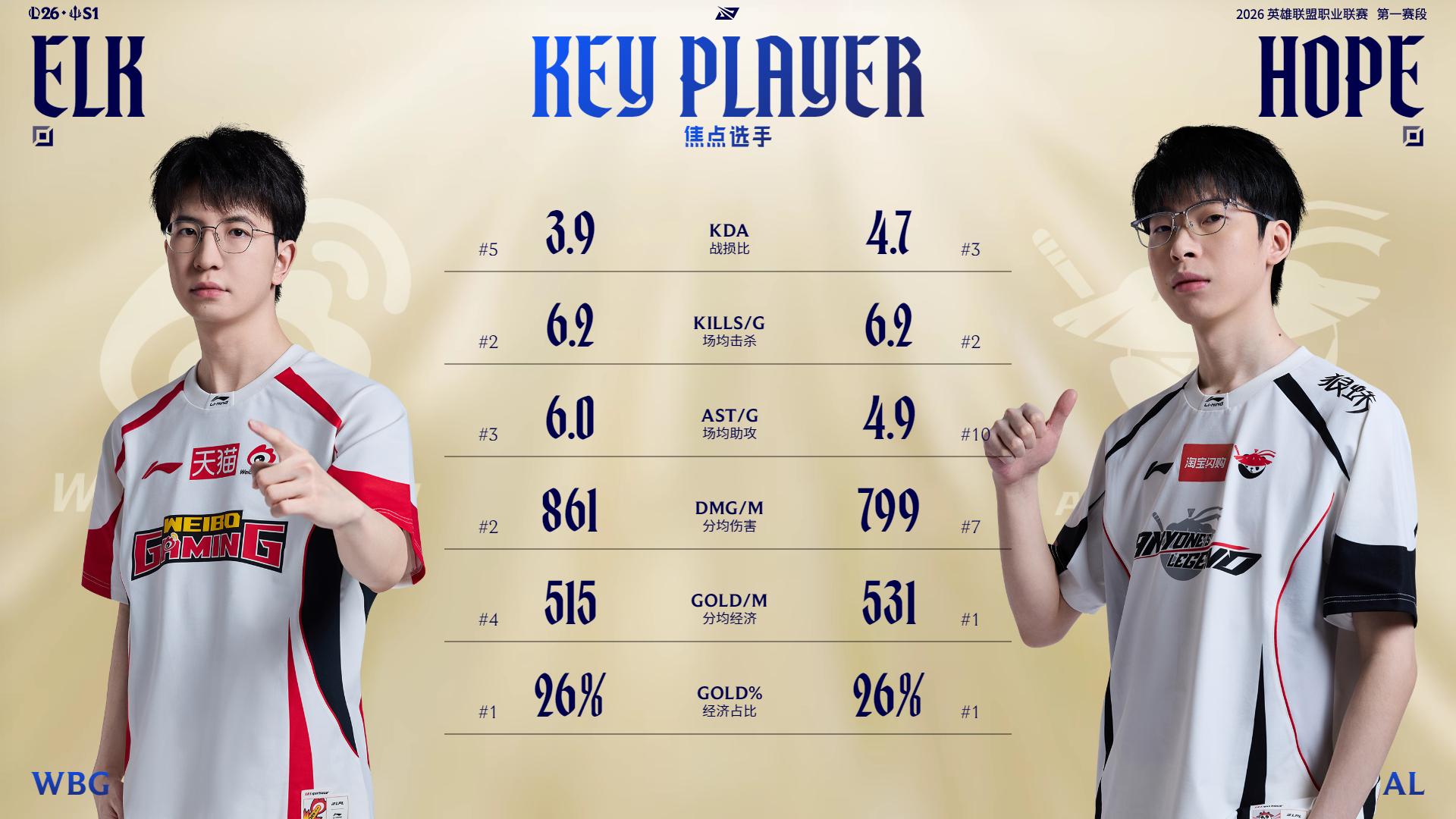 2026LPL第一赛段至今,Elk与Hope数据对比及英雄选取一览。