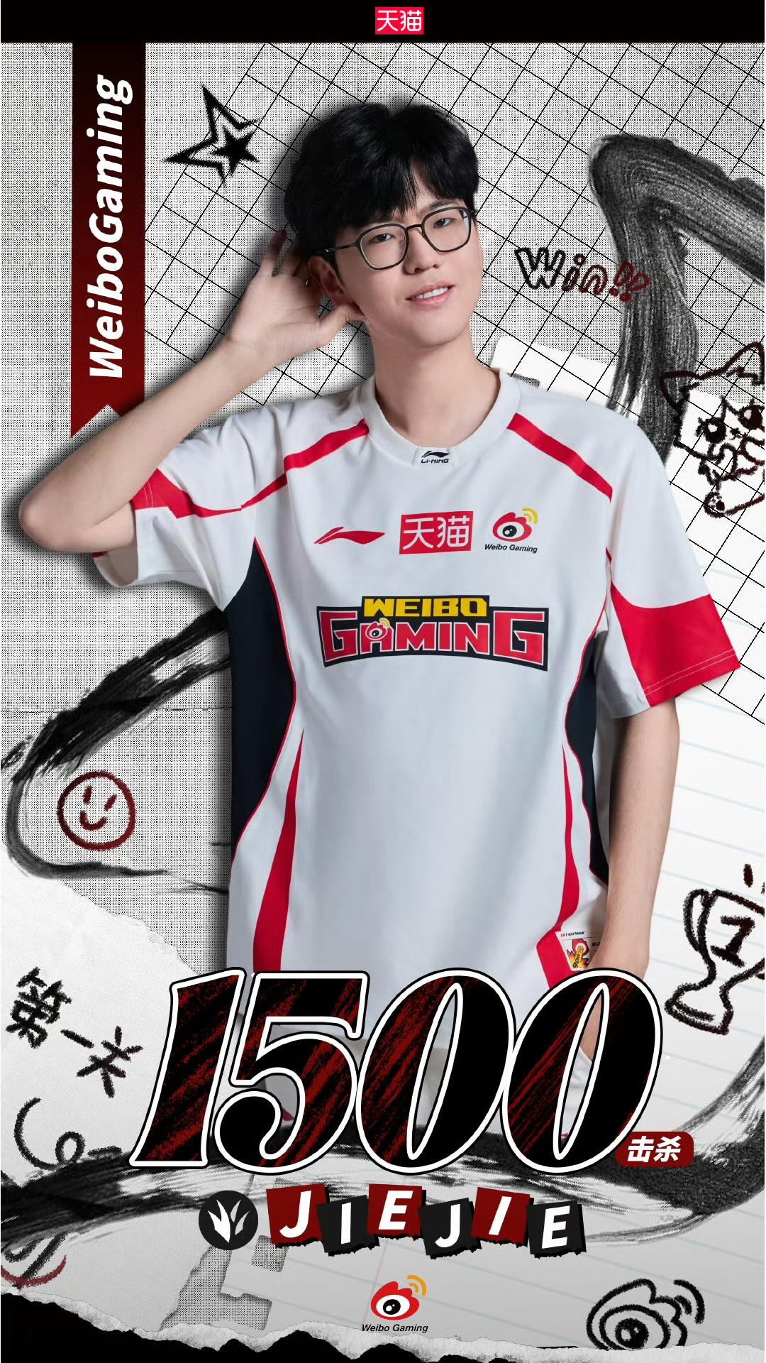 虎扑03月05日讯WBG发文祝贺Jiejie达成LPL1500击杀成就: