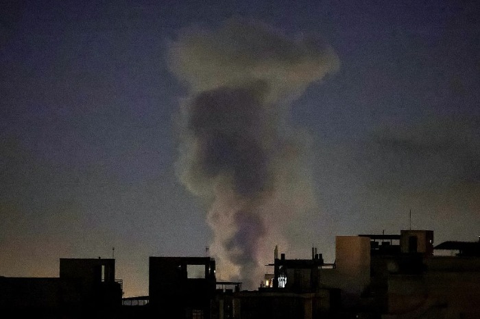 △当地时间4日,伊朗德黑兰,一处地点遭袭后升起浓烟