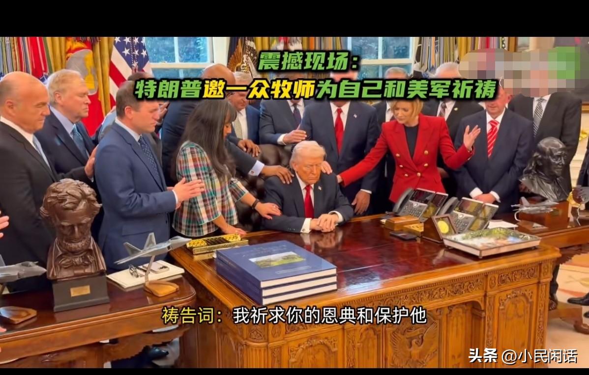绝对是心虚的表现![偷笑] 据今日俄罗斯(RT)报道,当地时间3月5日,美国总统特朗普在白宫椭圆形办公室邀请一众牧师们为自己祈祷,为参加对伊朗军事行动的美军士兵进行祈祷。现场画面十分震撼:牧师们站在特朗普周围,将手搭在彼此身上,并将“力量”传递和汇集给特朗普。 小民闲话:看来美帝已经是力不从心了,也需要主给它“力量”了![捂脸] 自作孽不可活!主也救不了你了!