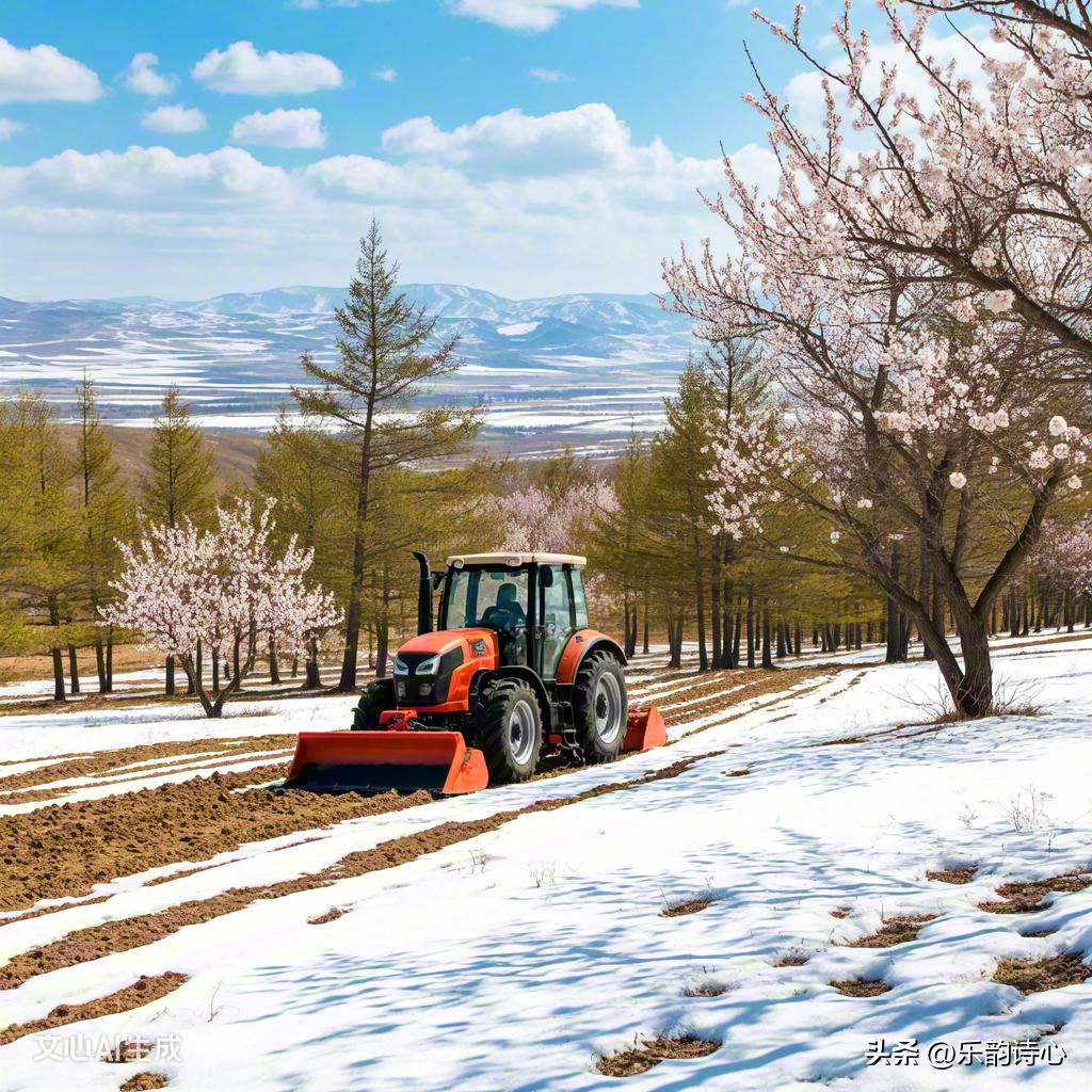 《塞北惊蛰》 残雪未消寒意重, 农机待启备春耕。 林间未见桃花艳, 且待惊雷唤绿萌。 这首诗词主要描绘了北方惊蛰"气温起伏、农事备耕"的特点:首句"残雪未消"呼应内蒙古等地的春寒余韵,"寒意重"暗含倒春寒的气候特征;次句"农机待启"精准捕捉北方"备耕"而非南方"春耕"的农事差异;第三句"未见桃花艳"以视觉留白凸显北方物候滞后,与尾句"惊雷唤绿萌"形成时空对照。全诗通过"雪-机-花-雷"的意象链,既呈现北方惊蛰的独特风貌,又以"待"字传递对春意的期待,"唤"字赋予自然以主动生命力,最终在"绿萌"的想象中完成季节转换的诗意升华。