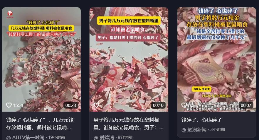 云南昭通,男子打零工攒下的几万块钱放塑料桶。不料,被老鼠啃咬,最后只换了几千元。 昭通大山的深夜,原本该是静谧的,但对于这位刚从银行归来的男子来说,每一秒呼吸都沉重得像是在吞咽砂砾。他守着空落落的屋子,只要一闭眼,满脑子都是那只被咬穿的塑料桶。 他攒下那几万块钱,并不是一笔横财,而是无数个在工地、在田间出卖体力的日子。一滴一滴汗水攒成了几万块现金,他觉得藏在塑料桶里,密封好、放深处,就离自己的生活近一点。这种原始的安全感,大山里的人都懂。 但他低估了自然界的生存法则。在老鼠眼里,那个蓝色的塑料桶壁脆弱得如同纸糊。老鼠潜入其中,不是为了挥霍,而是寻找一种纤维柔软、厚薄适中的“装修材料”去筑巢。 当他时隔许久再次打开桶盖,迎接他的不是厚实的归属感,而是满目的斑驳。曾经代表着生活底气的红纸,变成了毫无意义的纸屑、纤维与碎末。 那一瞬间的崩塌,他用“想死的心都有了”来形容。这并不是夸张,对于常年打零工的人来说,几万块钱和几千块钱的落差,中间隔着的是数年无法回头的青春和尚未实现的计划。 银行柜台成了他最后的救命稻草。然而,金融机构的运作逻辑,从不建立在对他辛劳的同情之上,而是建立在冰冷的物理面积计算中。 柜员摊开那些残破的碎片,手中的尺子比老鼠的牙齿更冷峻。按照规定,纸币剩下四分之三才能全额兑回,剩下一半到四分之三之间只能换一半,若连一半都不到,那便彻底成了废纸。 几万块沉甸甸的期待,经过专业评估和分类,最终在电子屏幕上跳出一个令人心寒的数字:几千元。那一刻,劳动价值在法理逻辑面前遭遇了惨烈的降维打击。 这件事在网上炸开了锅,评论区里各种“避险指南”层出不穷。有人复刻老辈人的经验,建议用铁月饼盒,说老鼠咬不动。有人推荐玻璃杯,甚至还有人开玩笑说该埋进土里。 但这其实是一个认知的陷阱。大家讨论的是“材质的强度”,而真正的问题在于“储存逻辑的落后”。塑料、铁盒甚至玻璃,都无法对抗自然的侵蚀和时间的意外。 老鼠的牙齿只是偶然的导火索。如果不是老鼠,也可能是连月的梅雨让纸币霉变,或者是灶火的一星火花,这些风险时刻都在窥视着那些藏在暗处的秘密。 人们总觉得现金握在手里才踏实,却忽略了这种“实感”实际上是最脆弱的。在现代金融体系面前,真正坚硬的护盾从来不是物理上的桶或墙,而是虚无却坚韧的数字信用。 哪怕是一张存折,甚至是一个记不住密码的网银账户,其背后支撑的是国家信用和存款保险。这些无形的保障,能在火烧鼠咬之后,让每一分辛苦钱都有据可查。 这场关于财富消失的悲剧,撕开了农村传统金融观念的一角。那被老鼠撕碎的,不仅是昭通大哥积攒的钞票,更是那种“把钱存家里才放心”的老派生存幻觉。 现在已经是2026年了,我们的生活被各种高精尖的支付手段填满,但在这偏远的山间,财富的安全感依然在和最原始的生物——老鼠搏斗,这本身就是一种残酷的错位。 那一桌子拼凑不起来的纸币碎末,在无声地警示着每一个人:赚钱是本事,但如果不学会如何与现代金融接轨,辛苦守护的家当,随时可能毁在一只老鼠的牙下。 看着几万块缩水成几千块,这种痛感不是因为丢了钱,而是因为那种对自己命运掌控感的彻底丧失。这种损失,往往比贫穷本身更让人深夜难眠。 别让你的血汗钱在塑料桶里慢慢变腐。给它们找个银行,找个不仅有墙、还有规则和信用的“家”,这才是对那无数个辛劳日夜最起码的尊重。