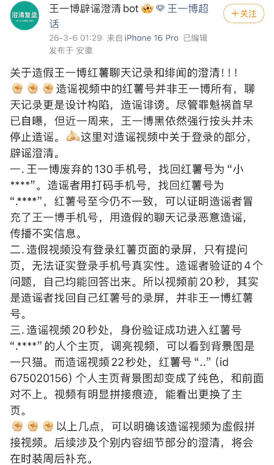 王一博粉丝澄清之前的🍠聊天记录为虚假拼接视频。原来是假的
