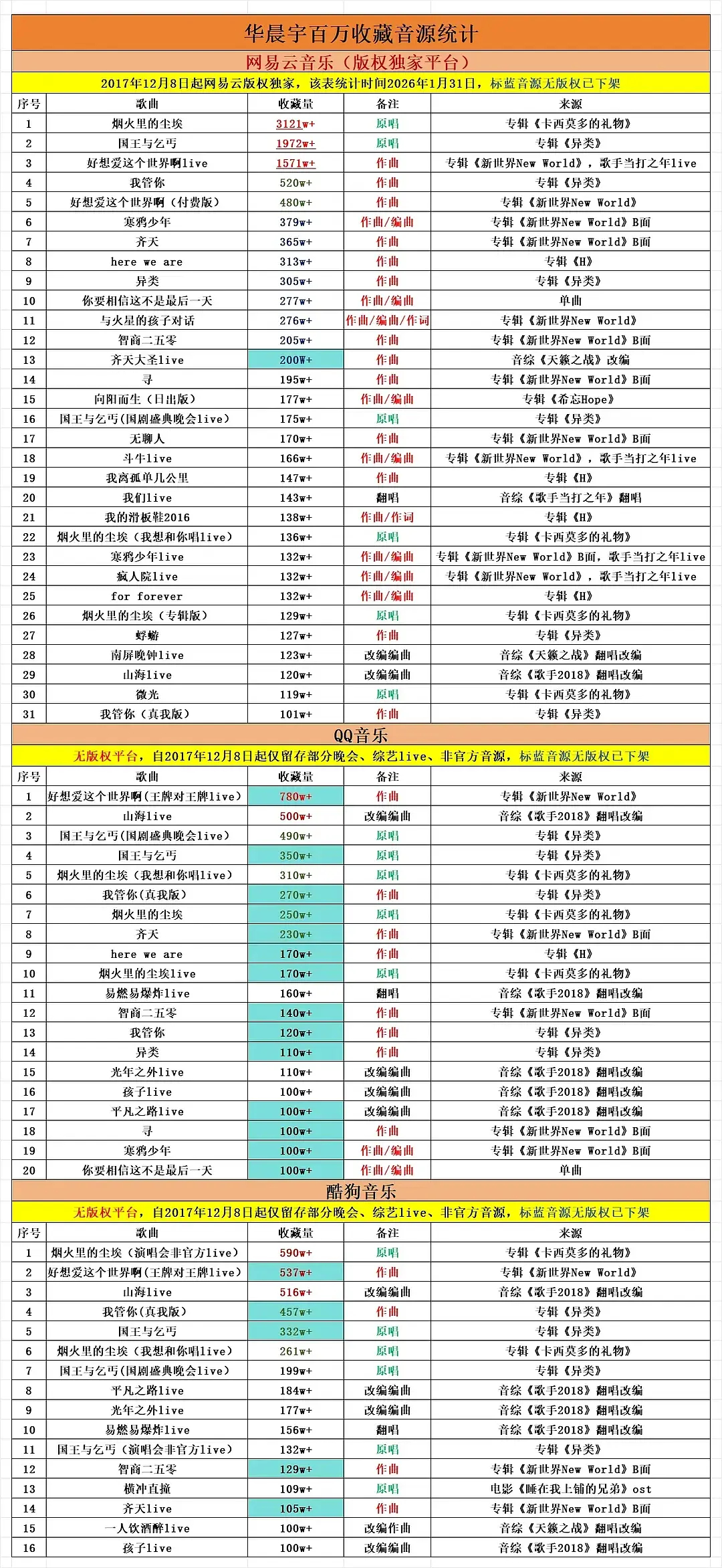 华晨宇六专销售额2025全球第一,单轮巡演动员超400万人次,获16项国际顶尖大