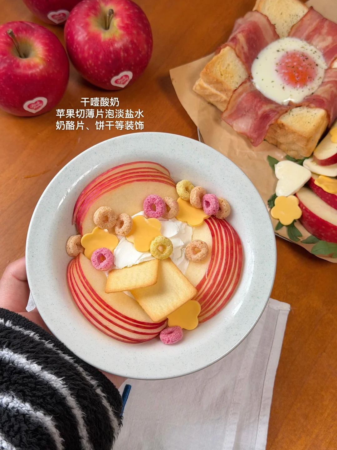 酸甜的PinkLady®苹果沙拉和烤吐司满满一盘