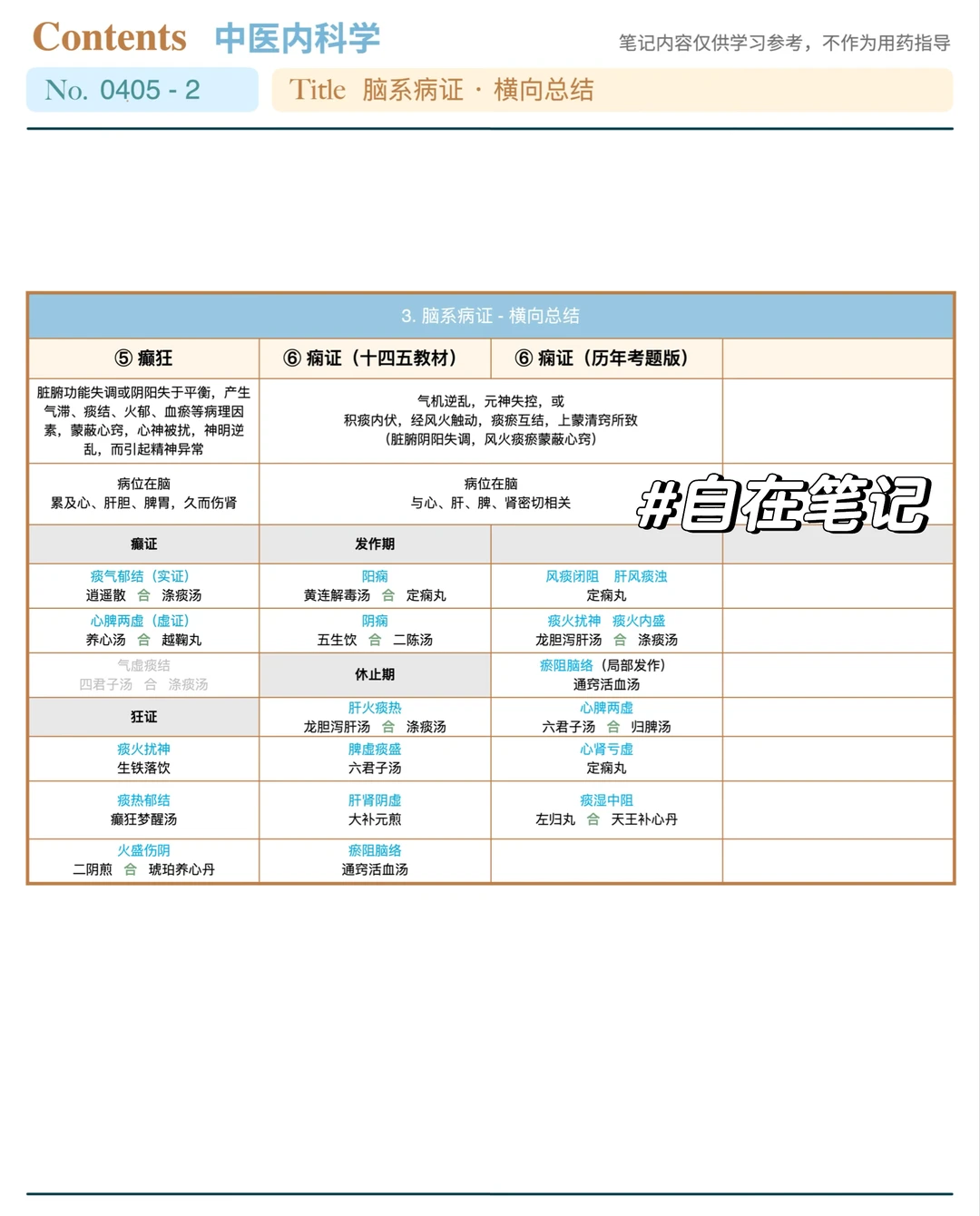 中内第三单元脑系病证学完了, 横向对比证型和选方非常有助于记忆~ 亲测超高效~