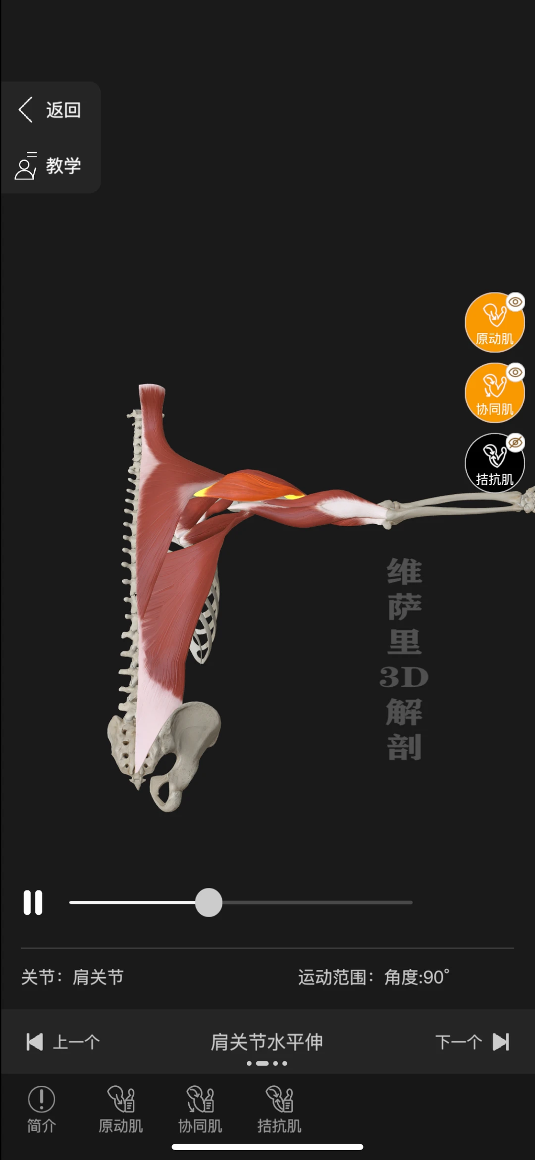 1.机械臂调至最里面一个孔,座椅高度调至肩关节略高于肘关节,肘关节略高于腕关节。 2.目标肌肉:肩(三角肌)后束。功能:肩关节水平外展(水平伸)。 3.横握,肘关节微屈(减少手臂的发力),保持肘的角度和高度,不要坠肘⚠️ 4.近端带动远端,不要🙅♂️远端手起。 5.肩胛骨要安分,随动后缩,不要主动后缩,背部肌肉菱形肌、中下斜方代偿。