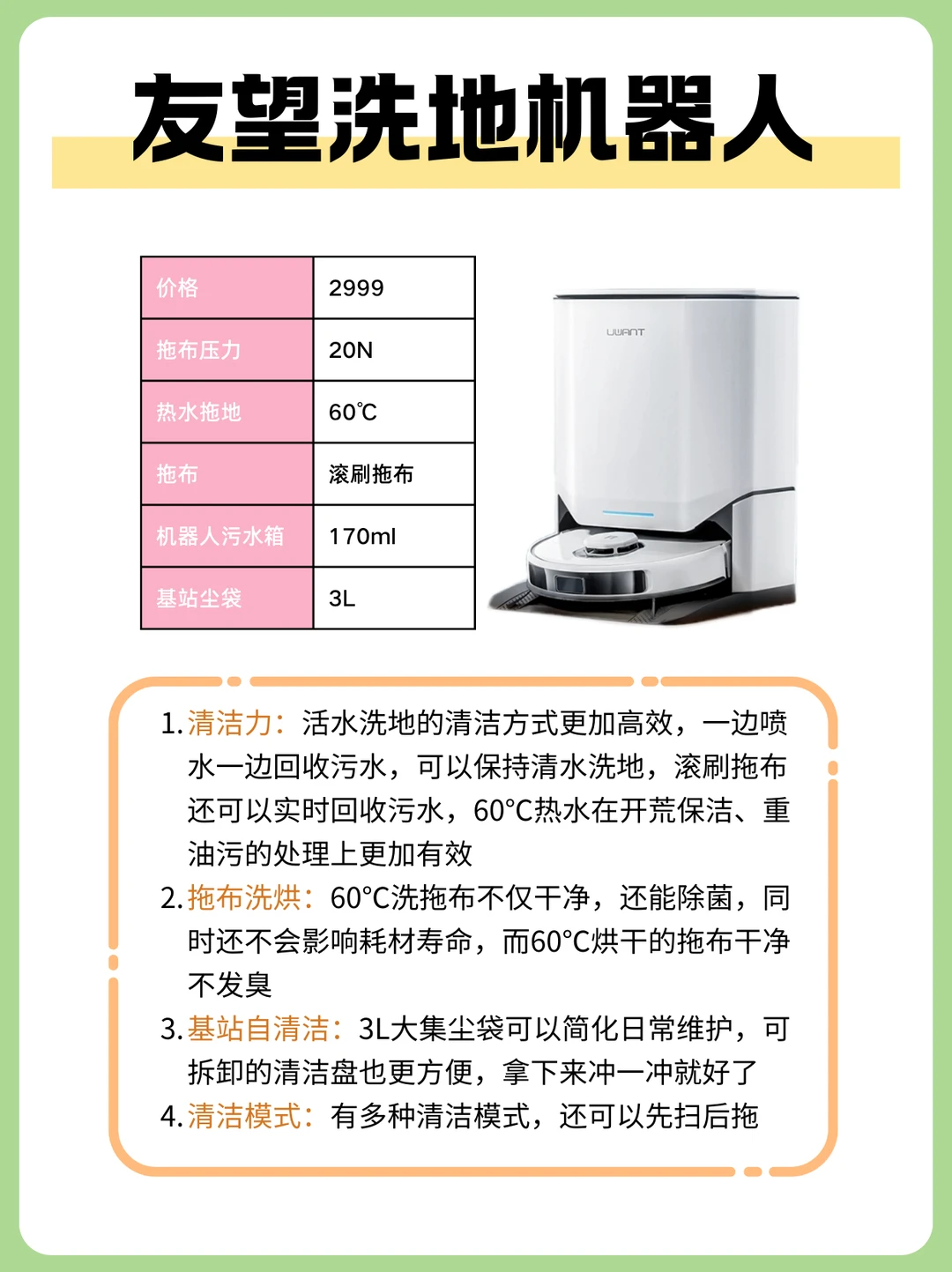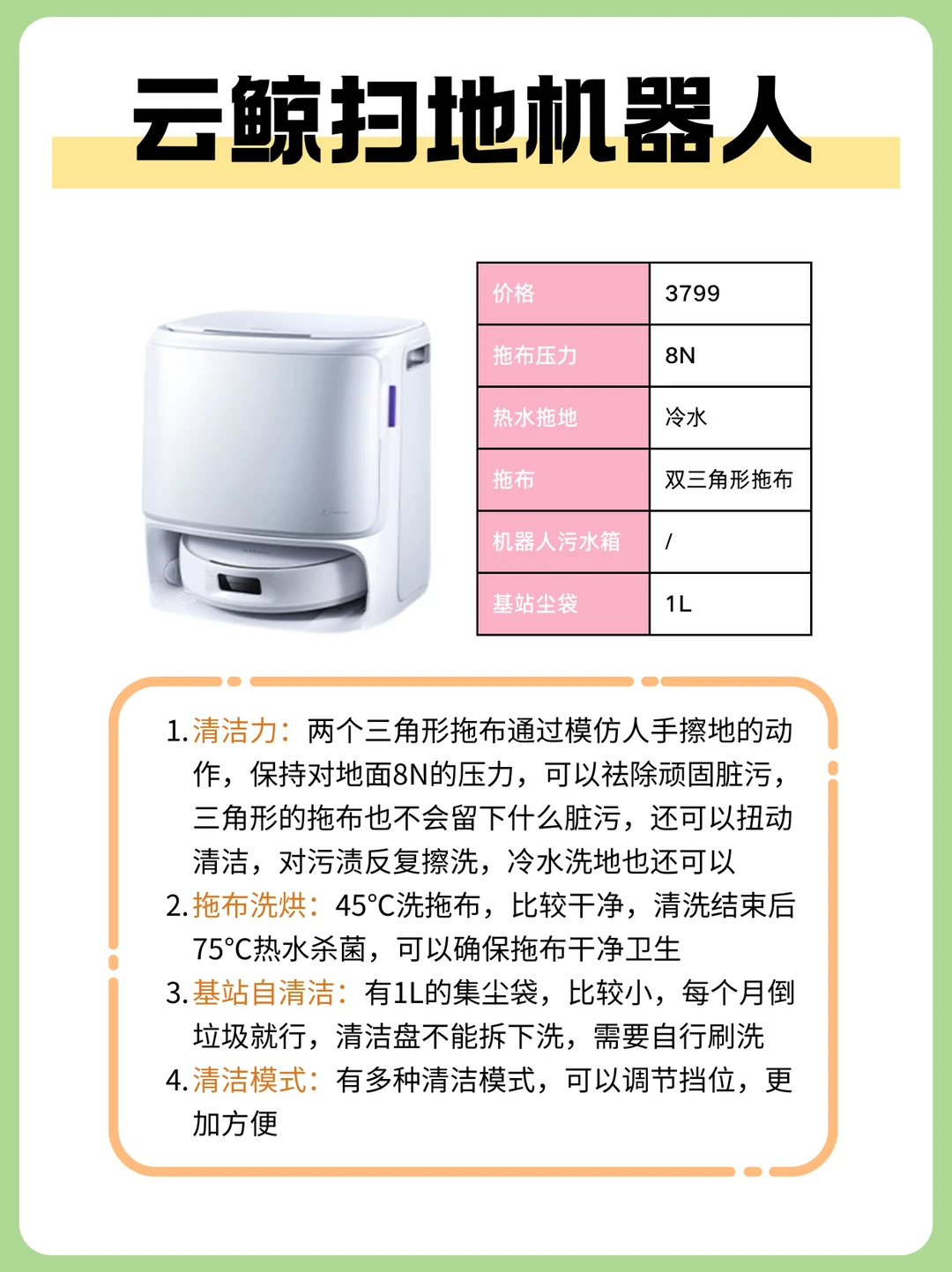 🧹拖布清洁:选有高温热水洗拖布功能的,60度热水高温水洗,对于渍、油污、泥渍和污垢等大部分可见污渍很有效,拖布可以时刻保持干净,拖地效果真的肉眼可见
