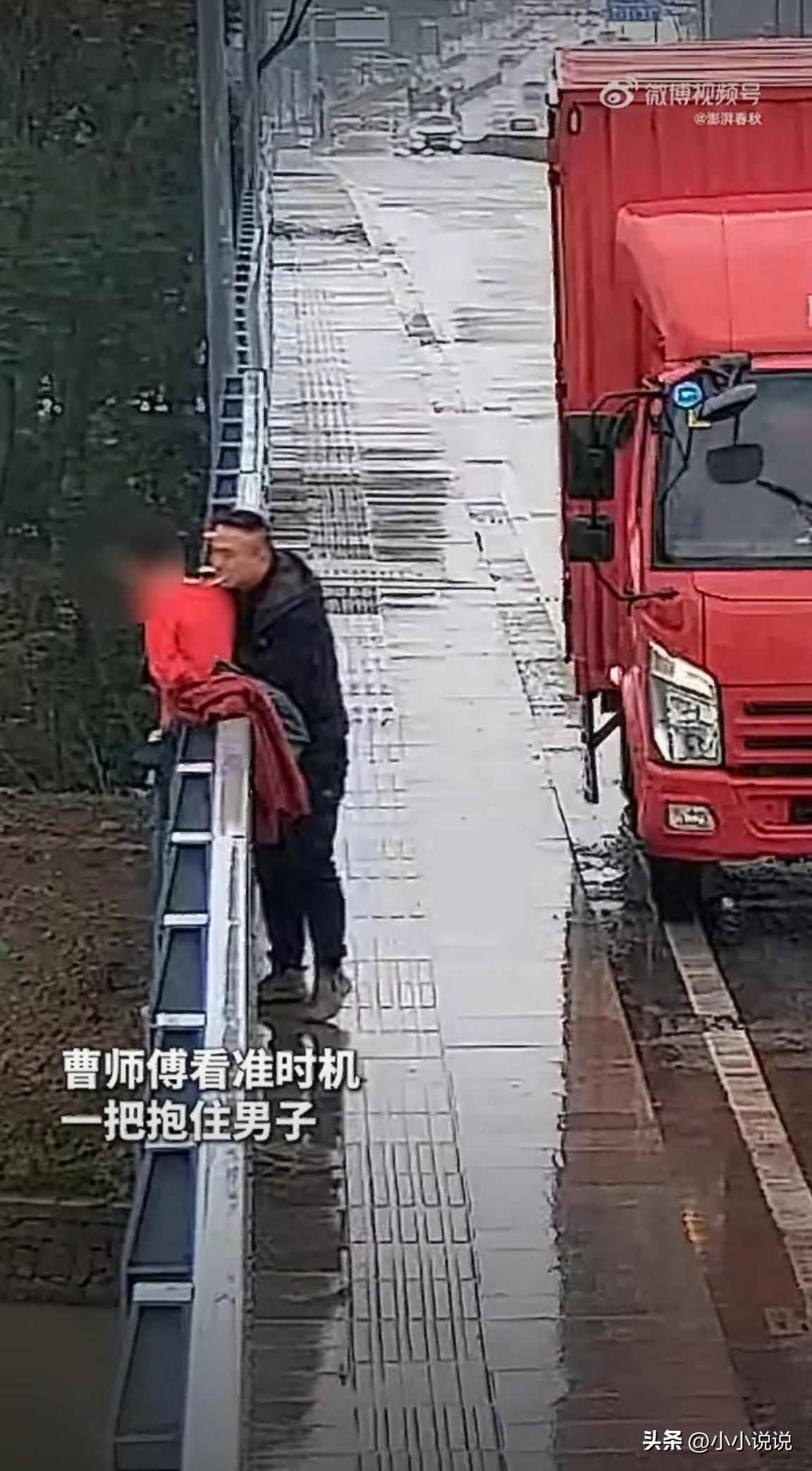 妥妥的见义 智为!浙江嘉兴,一小伙在桥上翻越围栏欲轻生,一货车司机驾车经过时发现了情况,于是司机立即停车,下车后便小心翼翼的走到男子面前,并笑容满面的给小伙递上一支烟。见小伙接过烟后情绪还算稳定,司机又开始耐心和小伙聊天,慢慢的劝导小伙。直到救援民警到达现场后,司机大哥才趁机一把紧紧抱住小伙,最终和民警一合力将小伙救了回来。 3月5日午后,吉祥大桥上车水马龙、川流不息。谁能料到,一场争分夺秒的生死营救,正于这繁华喧嚣中不动声色地上演。 货车司机曹师傅开着车,视线习惯性地扫过对向车道。就在那一瞬间,他的目光死死钉在了一个画面上——护栏外侧,一个年轻人双手死死攥着栏杆,整个身体悬在半空中,脚下就是万丈深渊! 那一刻,生与死就藏在指尖的肌肉张力里。松手,就是永别。 换成别人,可能会犹豫、会害怕、会掏出手机报警然后远远观望。但曹师傅没有。他二话不说,掉头、停车、熄火,整套动作一气呵成,行云流水。从驾驶室跳下来的时候,他手里只揣了一包烟,快步朝桥上走去。 他并未疾步冲向前方。那股冲动在心底翻涌,却终究被理智克制,他只是静静地伫立原地,未曾迈出那急切的步伐。 为什么?因为他脑子里在飞快盘算:直接冲上去抓人,万一对方情绪激动一挣扎,两个人都得出事!这种时候,蛮力不管用,得用脑子。 于是曹师傅放慢了脚步,脸上挂着笑,就像碰见老熟人似的走到男子跟前,语气轻松得不得了:"兄弟,来根烟?" 就这么简单的一句话,仿佛只是路过搭个讪,没有任何说教的意味。男子愣了愣,竟然真的接过了烟,紧绷的情绪也跟着松了几分。 曹师傅给他点上火,自己也点了一根,就那么陪着他抽,话也不多,就那么几句家常:"你还年轻,人生没有过不去的坎。此般话语,听来是否略显陈词滥调?这般疑问,似能勾起对言语新意的探寻,让人不禁思索表达的真意与价值。但此刻,这些最朴素的话,恰恰不会戳到伤口,反而像一只温暖的手,把人从绝望的边缘拉回来一点点。 暗处,派出所PTU队员已经接警赶到,悄无声息地就位。曹师傅余光瞥见救援力量到场,心里有了底。他继续跟男子聊天,一边观察着对方的肌肉松弛度、呼吸节奏情绪稳了,机会来了! 曹师傅猛地发力,一把攥住男子胳膊。与此同时,民警迅速冲上,众人齐心协力,仅在短短一分钟内,便将其成功拉至安全地带。整个过程干净利落,没有任何拖泥带水。 事后,有人询问曹师傅,缘何要插手此事。曹师傅仅以五字作答:“看到了,就得管。”寥寥数语,尽显担当与磊落。" 没有惊天动地的口号,没有英雄主义的宣言。仅仅一支烟的慰藉、寥寥数语的关怀,再加上一个温暖的拥抱,便成功挽留住了一条宝贵的生命。 这已经不是曹师傅第一次出手了。去年,他偕同徒弟凭借危化品专业知识,成功扑灭了车辆燃起的大火。那一场灭火行动,彰显了他们专业素养与应急能力,避免了可能的险情。今年年初,他自发清理高速路上的障雨布。面对交警的表扬,他仅是微微一笑,谦逊回应:“此乃举手之劳。”于他而言,此类琐事皆为不值一提之事,完全没有摆上台面言说的必要,在他眼中不过是些微不足道的细枝末节罢了。 但网友们可不这么看。大家给他的救援方式起了个新词,"见义智为"。不是那种不顾一切的莽撞勇气,而是勇气加智慧的完美配方。有人说"递烟时的笑脸真美",有人感叹"一支烟,一条命",还有人说"这才是真正的高手,救人于无形"。 于烟火日常中,那些细微举动看似平凡,却因承载着对生命的敬畏之心,刹那间拥有了千钧之重,于平凡中彰显不凡。 那个被救下的年轻人后来怎样了?故事没有交代。但或许这份留白,恰恰是希望的模样,只要还活着,一切都有可能。明天太阳照样升起,生活还得继续,谁知道转角会不会就遇见光呢? 世间并无从天而降、自带光芒的英雄,所谓英雄,不过是在危难之际,心怀大义、摒弃恐惧,毅然挺身而出的平凡人。他们以凡人之躯,行非凡之事。曹师傅以实际行动昭告世人:在人生旅途里,每个人皆有可能化身成那个甘愿停下匆匆步履、给予他人关注与帮助的路人。下次你在路上看到需要帮助的人,会不会也像他一样,哪怕只是递上一支烟、说几句暖心话? 当今世界,不乏冷眼旁观、冷漠以待的看客,他们对周遭之事置若罔闻。真正稀缺的,是那些心怀热忱、愿伸出援手的平凡大众。