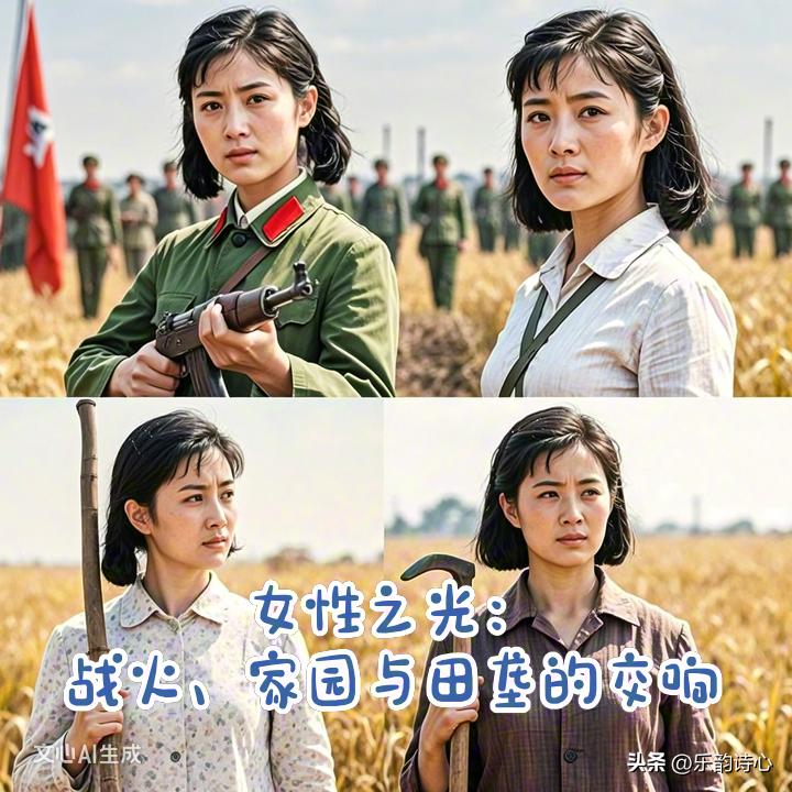 《女性之光:战火、家园与田垄的交响》乐韵诗心原创诗歌颂: 于烽火漫卷的疆场, 她们是破晓的锋芒。 以柔荑紧握钢铁的倔强, 将无畏熔进弹雨的交响, 让和平的曙光刺破夜的仓惶。 在温馨织就的屋廊, 她们是静谧的月光。 用温柔抚平生活的褶皱, 让爱意在琐碎中静静流淌, 让归巢的倦鸟寻得栖息的港。 于金浪翻涌的田庄, 她们是岁月的诗行。 以汗水润泽沉睡的土壤, 将希望播撒在广袤的胸膛, 让丰收的号角奏响生命的乐章。 啊,伟大的女神,永远熠熠生光!