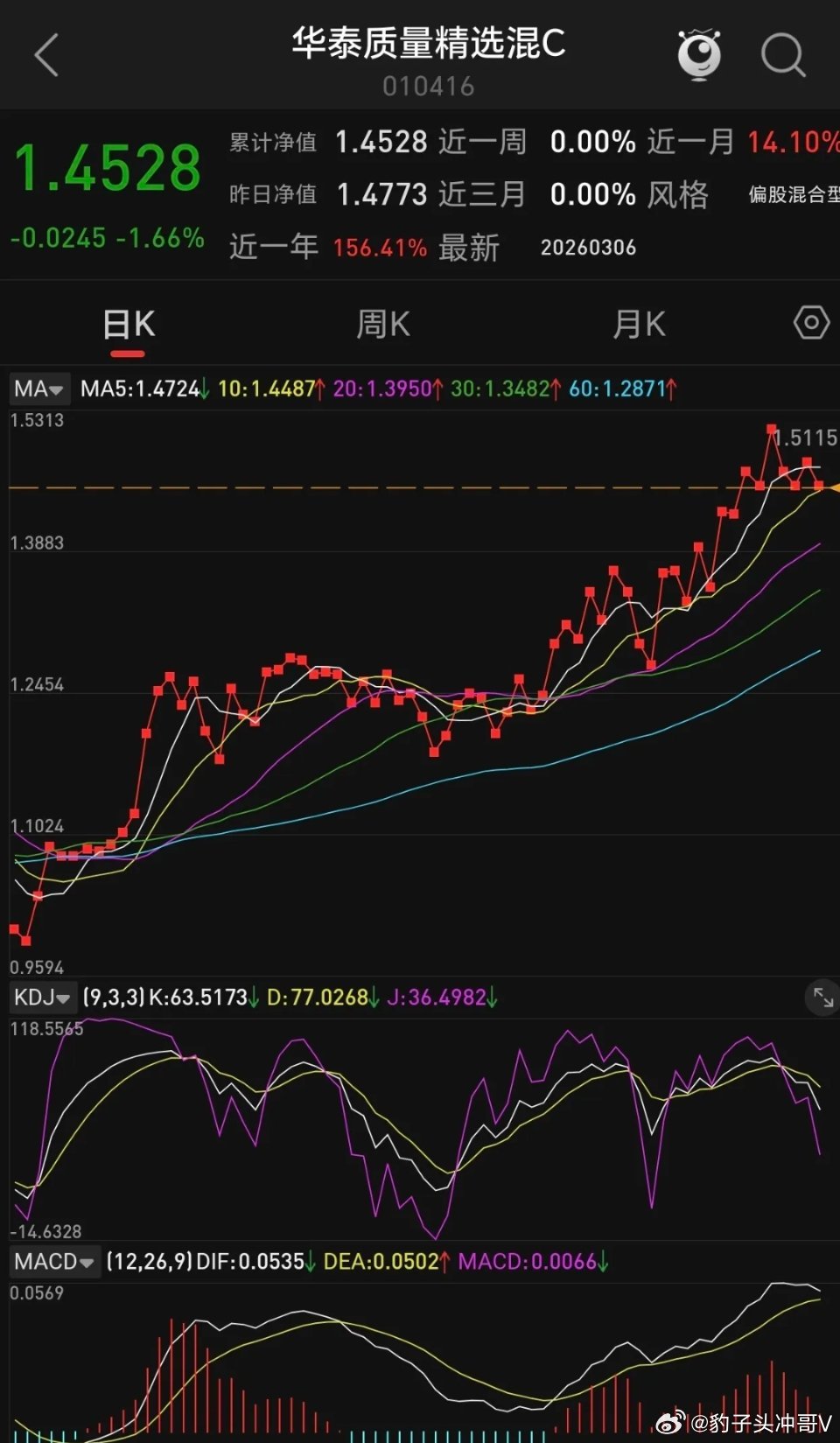 你对两只基金的判断很准,我把核心逻辑、操作策略和风险点整理成清晰版👇一、两只基金核心差异(决定业绩)1. 富国创业板人工智能(159246/024662)类型:被动指数ETF,跟踪创业板人工智能指数持仓:中际旭创、新易盛、天孚通信(CPO龙头)+ 蓝色光标、昆仑万维(AI应用)等,成分股更分散、偏AI全赛道走势:波动大、7–8天高低切换,适合高抛低吸,不适合死拿业绩:今年来+10.30%,近1月-4.94%,跑输CPO主线2. 华泰质量精选(CPO混合型)类型:主动混合,聚焦CPO/光模块/算力硬件,选股更集中持仓:以CPO核心龙头为主,剔除AI应用等弱分支,进攻性更强走势:沿10日线上行,回调多在20日线企稳,极少破30日线业绩:显著跑赢富国AI指数,抗跌性更强、涨多跌少二、操作策略(按你的判断优化)🔹 富国创业板人工智能(短线波段)策略:只做高抛低吸,不长期持有节奏:低点→高点约7–8天,按周期做T 纪律:破位(如有效跌破10日线)果断减仓,避免坐过山车🔹 华泰质量精选(中线低吸)策略:回调低吸,不追高买点:第一目标:回踩20日线(当前约-4%),分批建仓第二目标:极端回踩30日线(约-7%),加仓持有:沿10日线持有,破20日线减仓,破30日线止损节奏:CPO主线强势,低吸胜率更高三、CPO赛道核心逻辑(支撑你判断) 产业催化:2026年CPO商用元年,英伟达40亿加码,1.6T批量供货,订单饱满资金抱团:主力深度介入,调整时抗跌、反弹时领涨风险:位置偏高、波动大,严格按均线纪律操作四、一句话总结 富国AI指数:波动大、适合短线高抛低吸华泰质量精选:CPO主线、沿均线低吸、中线更优方向:CPO仍是科技主线,优先做华泰,富国只做波段