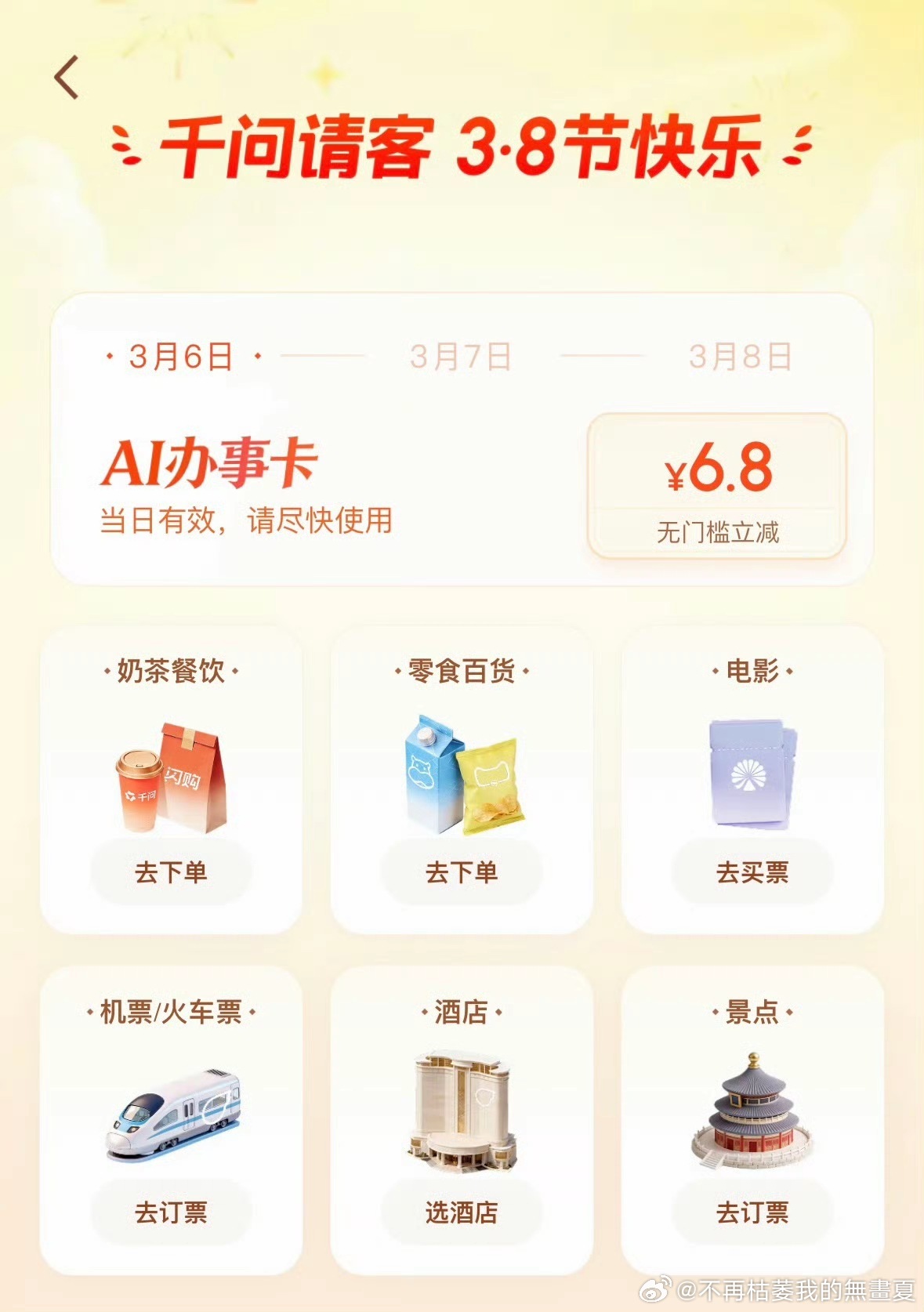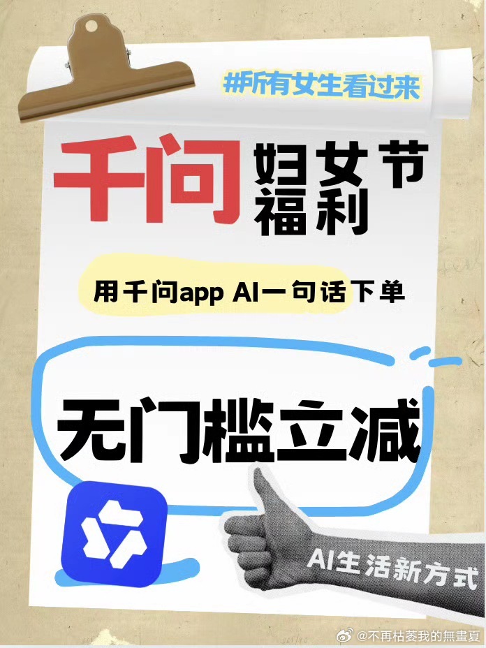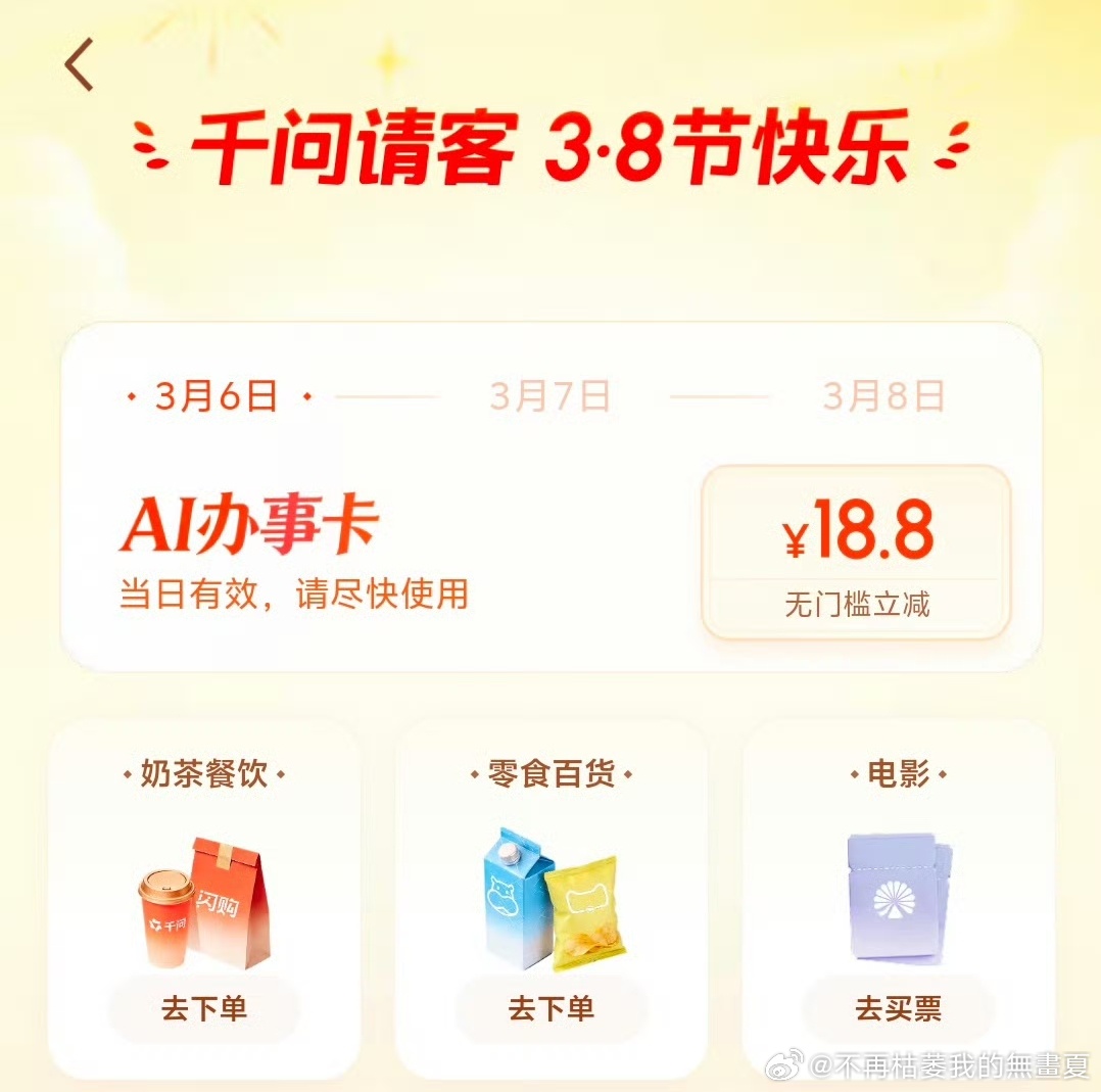 千问女孩吃上刘文祥了千问领AI办事卡,一句话让AI下单刘文祥,无门槛立减人人都能
