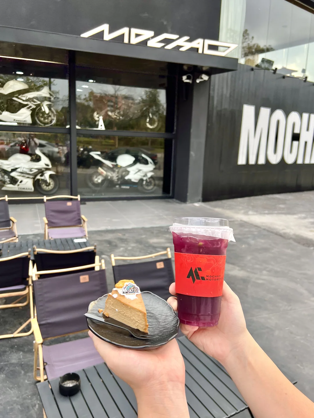 就在油湾公园这家摩潮机车真的太会了🖤 升级开大之后空间超大,黑酷工业风直接拉满, 一进门就被一排排机车帅到失语🏍️ 室内室外都能坐,氛围感绝了,随便一站都是大片! 拍照党、机车控、咖啡党闭眼冲📸 🍓草莓柠檬茶清爽解腻, 巨峰葡萄酸甜回甘,很有特色 咖啡巴斯克芝士蛋糕松软绵密 环境舒服又宽敞 特别适合约上闺蜜一起过来拍照聊天 📍摩潮机车(油湾公园附近)
