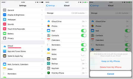 步骤 2. 点击“iCloud”并关闭“联系人”选项。