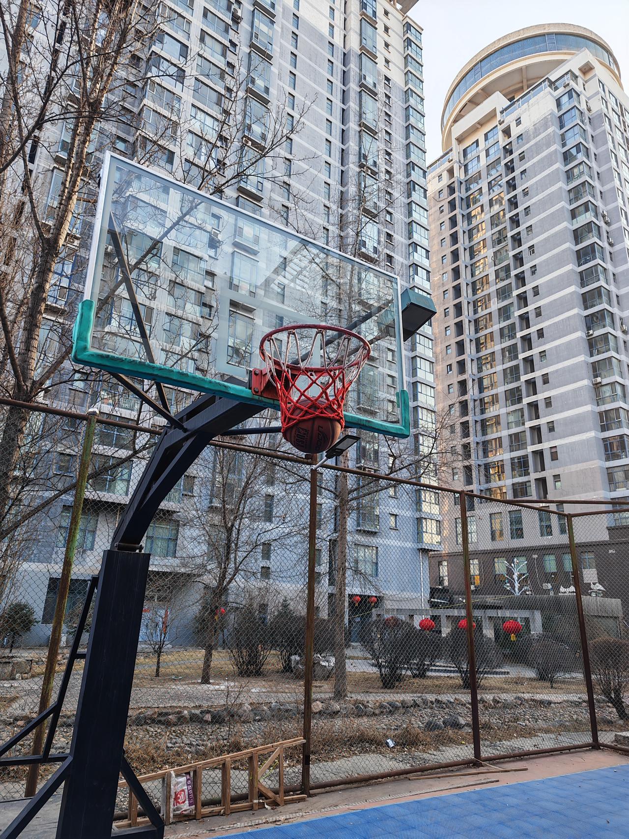 这篮筐设置的有问题,篮球架住掉不下来。