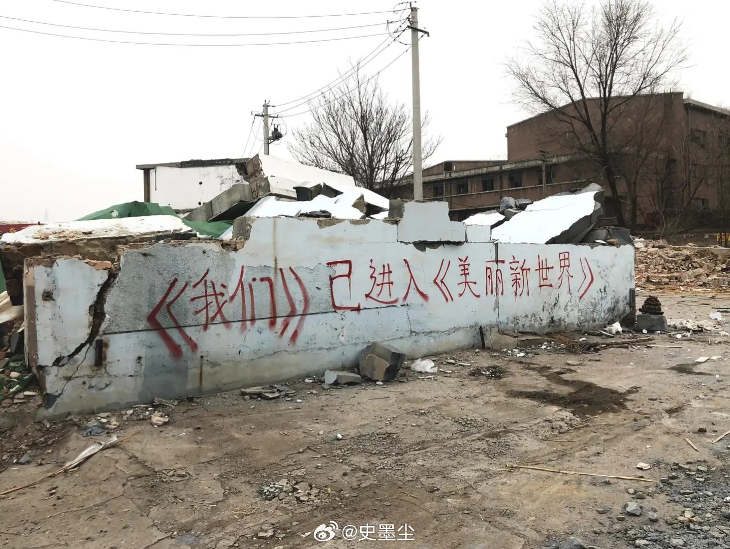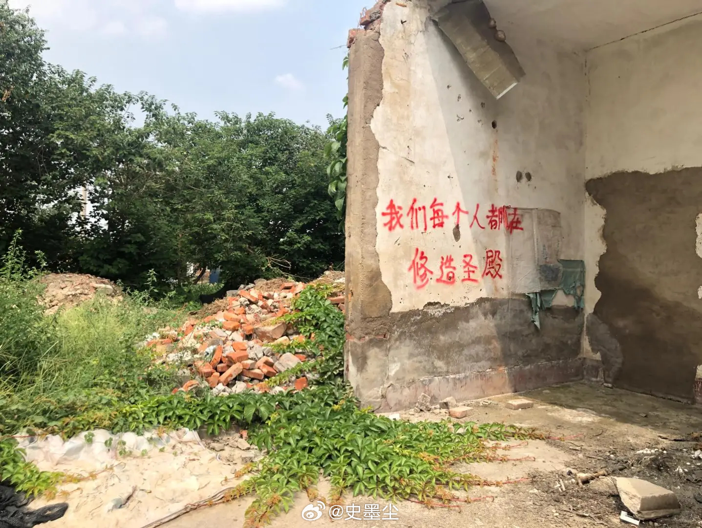 城市在坍塌 文字在发芽这是城市拆毁的角落,也是浪漫野生的剧场。斑驳的墙垣、散落的砖瓦、即将被夷平的废墟之上,有人用滚烫的字迹,写下最无畏的告白……