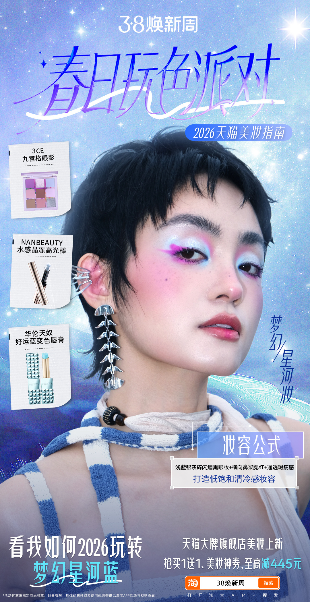 天猫春日玩色派对 把大自然的颜色画在脸上 这么新的玩色形式就问老己你见过吗?六个流行色全给你集全了,中式的茱萸美人粉、烟雨春山绿,梦核闪耀的梦幻星河蓝、鸢尾迷雾紫,还有情绪性的落日微醺橘和春萤流光金。更别提🐱大牌旗舰店美妆上新,买1送1,抢美妆神券,至高减445元~上🍑get同款好物!姐妹这谁能忍不住啊!