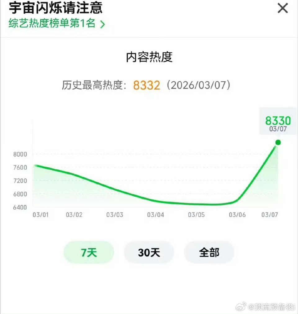 宇宙闪烁热度峰值又达新高啦,白鹿综艺飞行一期热度又遥遥领先了