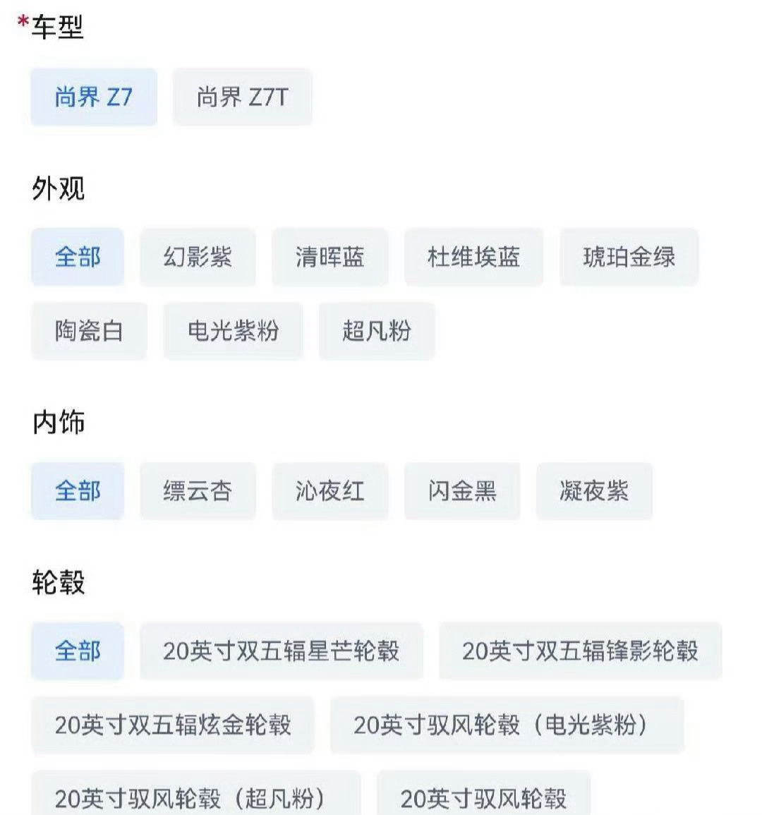 虽然颜色这些我不清楚,但Z7全是20寸这事我知道
