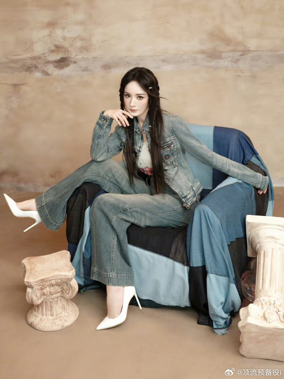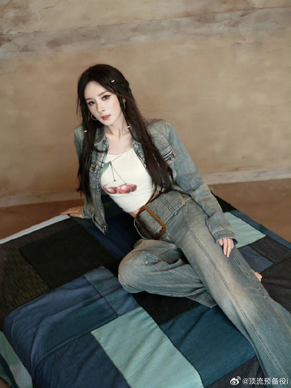 杨幂编发 哦吼今日份酷酷牛仔幂,恋姐癖真的要犯了