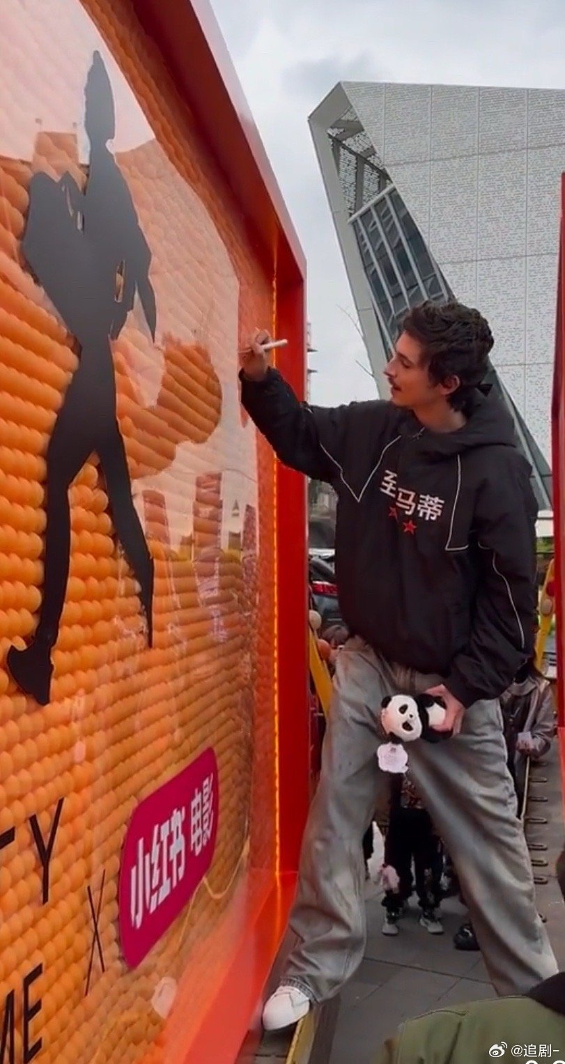 甜茶亮相成都 提莫西·查拉梅穿着“至尊马蒂”卫衣在成都逛公园的照片刷屏了!影迷们齐声喊“奥斯卡好运”的画面,隔着屏幕都能感受到热情。