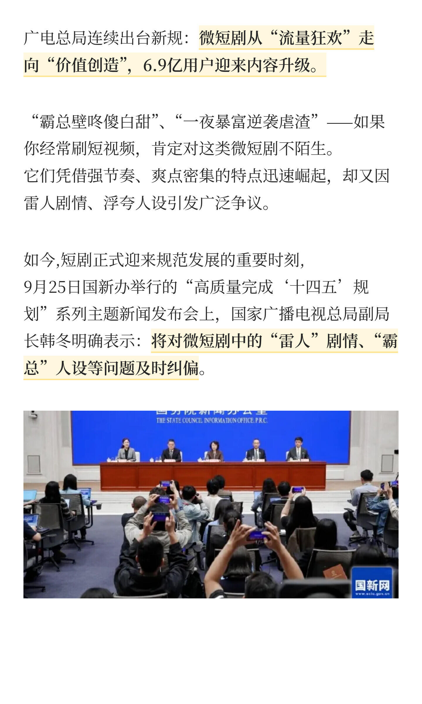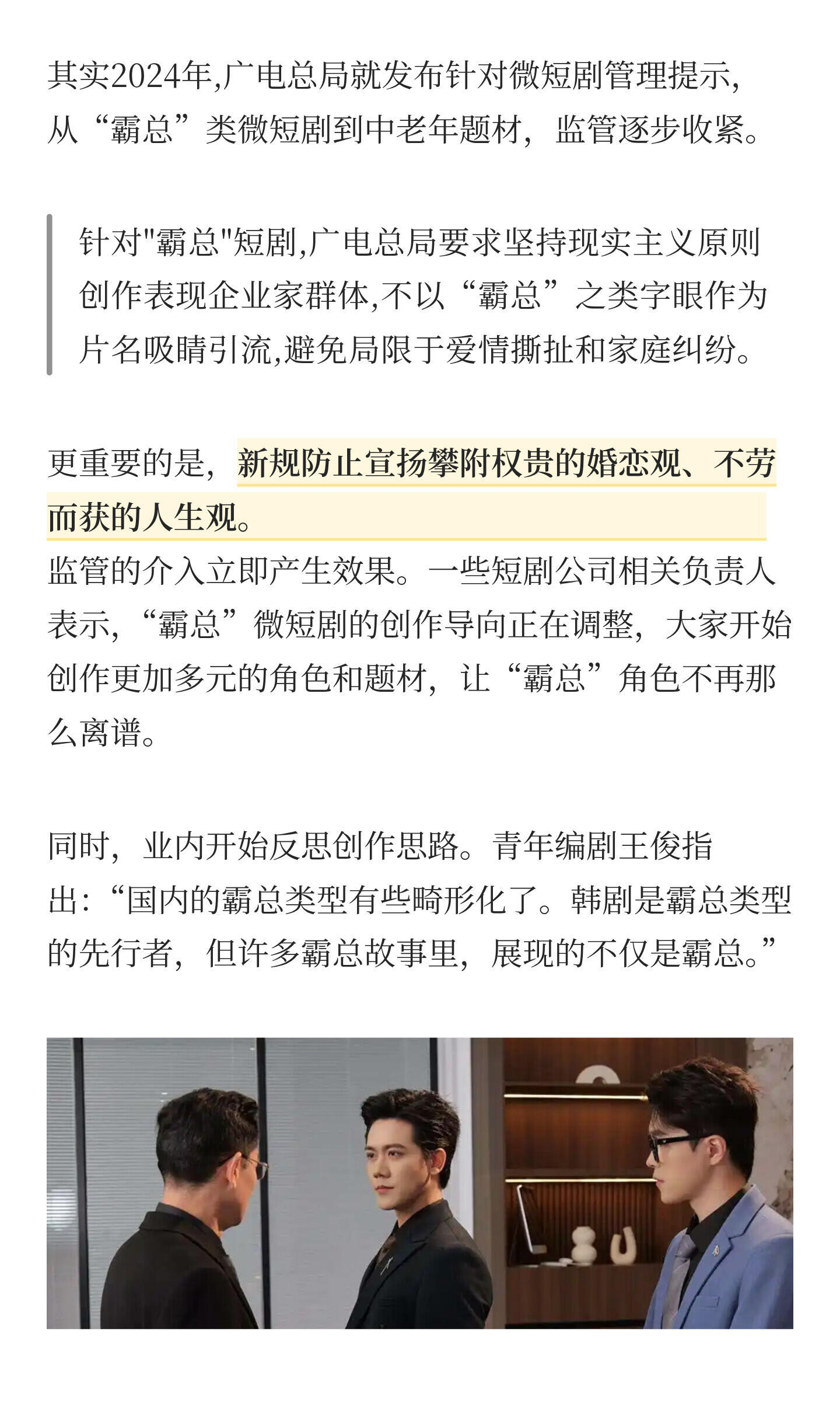 微短剧告别"霸总",市场迎来价值重构?短剧行业正经历从'霸总'乱象到规范化发展的关键转折人民锐评微短剧监管的补丁该怎么打