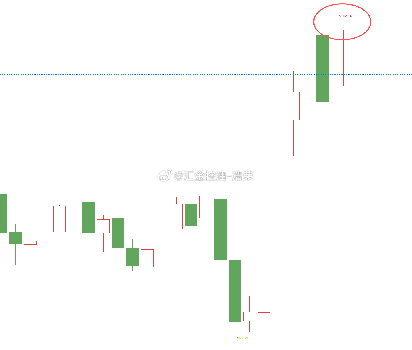 黄金5084位置多,现行情如期上涨,现报价5102位置,多单顺利浮盈180个点,