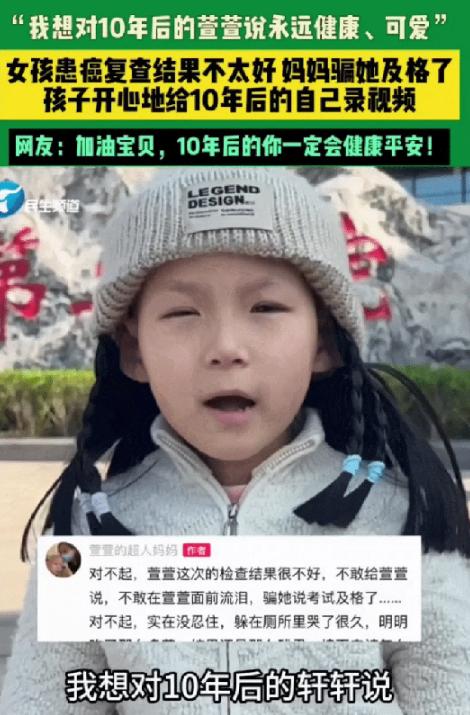 看哭了。重庆,一患癌小女孩去医院复查后结果不好,妈妈为了让孩子开心一点,便谎称她这次检查“及格”了。女孩听后开心得不得了,随即便让妈妈带着她来到医院门口,录制一段视频纪念这特殊时刻。而当女孩对着镜头表达对未来的期许,还给10年后的自己说了一番话时,拍视频的妈妈还是忍不住泪目了。 重庆肿瘤医院门口,那根合金道闸在正午的太阳下晃得人睁不开眼。手机屏幕下方,红色的录制键一闪一闪,正对准眼前这个瘦小的身影。 这个刚从病魔手里逃出来的小女孩,突然从干瘪的胸腔里爆发出一声惊天动地的吼叫。 "十年后的自己,嗨!"她的声音直接盖过了马路上那些大货车的轰鸣。谁曾料想,在如此娇小的身躯之中,竟隐匿着这般磅礴的生命力。那看似柔弱的外在下,实则是一股不可小觑、蓬勃向上的力量。 她方才拿到了今日的复查结果。那薄薄的一纸,似承载着无数期许与忐忑,此刻安静地躺在她手中,等待她去解读其中的讯息。那份冷冰冰的检查报告,被妈妈翻译成了一句简单的话——这次检查,过关了。 握着手机的手抖得厉害。妈妈紧咬着牙关,竭力将喉咙里翻涌的哭声咽下。然而,泪水却如决堤之水,止不住地簌簌落下,重重砸在手机屏幕之上。 这位当妈的太清楚那些化验单上的数字意味着什么了。她以前就是医生,那些指标背后藏着多大的凶险,她比谁都懂。神经母细胞瘤,堪称儿童癌症领域的“狠角色”。它在众多威胁儿童健康的癌症中,以其凶险特质脱颖而出,严重危害着孩子们的生命健康。孩子确诊之后,那个当爹的第一个跑了,直接撂挑子不干了。 曾经在手术台上救死扶伤的双手,现在只能握着刀去菜市场切西瓜。为了给孩子治病,她从医生变成了卖水果的小贩。全靠外公那点微薄的保安工资在死撑。老人家穿着破旧的保安服,拿着扫把和洗洁精,浑身泥水地扛起了这个家。为了省钱治病,她们搬了七次家,一次比一次住得憋屈。当所有人都拼了命想给孩子争取一线生机的时候,医生却递来了一张病危通知书。 那一行行墨色字迹,仿若一把把锋利的刀刃,毫不留情地扎进心间,每一个字都似带着尖锐的芒刺,刺痛着灵魂,令人痛彻心扉。几十分钟前,这个当妈的躲进了医院的卫生间,靠着冰冷的瓷砖墙,把自己哭得快要散架。 她无论如何都不能在孩子面前情绪崩溃。身为母亲,需要在孩子面前保持坚强,以坚韧之态为孩子撑起一片安稳的天空。她飞快地调整好情绪,推开门的时候,脸上已经挂上了笑容。这不是什么绝症,只是一场考试,我们及格了,过关了。她把那些绝望的真相,硬生生包装成了一份喜报,递给了孩子。 小女孩立刻就信了,整个人都亮了起来,蹦蹦跳跳地冲到医院门口。 我们立下十年之约,待时光流转,十年期满,彼时再相逢。于岁月的重逢里,续写彼此人生新的篇章。她满脸兴奋,对着镜头高呼,郑重地为十年后的自己录制了一段视频。在视频里,她抛出一连串问题,仿佛要穿越时光与未来的自己对话。 2026年,她郑重立下此约定,心怀憧憬,目光笃定地望向未来。她满心期待着,到2036年,这约定能如期圆满兑现。她不仅要自己健健康康地活着,还要好好读书,将来帮助那些和她一样被命运捉弄的人。 这段视频于网络上掀起轩然大波。它如一颗重磅炸弹,瞬间引发广泛关注,热度急剧攀升,在网络世界激起层层涟漪,迅速成为众人瞩目的焦点。成千上万的人涌进来,被这股反常识的生命力震撼到说不出话。 所有人都在评论区里为这个孩子祈祷,都在赌她能挺过去。大家都相信,十年后的医学会更发达,一定能把癌症彻底治好。 别去深究那份检查报告上的真实数据到底意味着什么。这座用眼泪和爱筑起来的堡垒,此刻密不透风,滴水不漏。 妈妈退到了镜头之外,把所有的希望和祝福都推给了孩子。那句"再见"和所有的承诺,随着山城永不停歇的轰鸣声,回荡在这座城市的每一个角落。