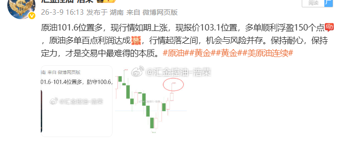 原油101.6位置多,现行上涨至104.2位置,多单止盈260个点,二百点利润达成,踏准行情一马当先,天天吃饱盈利、口袋持续增厚,结果就是最硬的验证。原油黄金黄金美原油连续