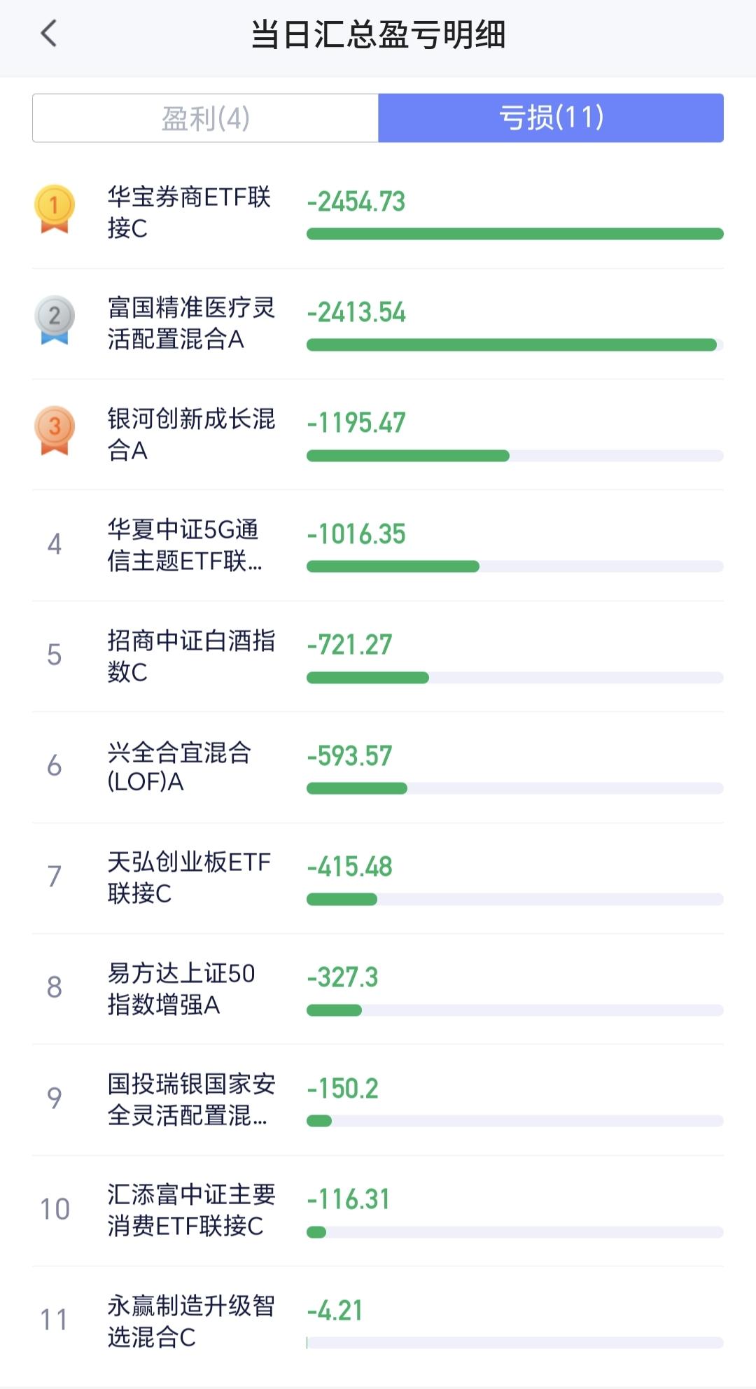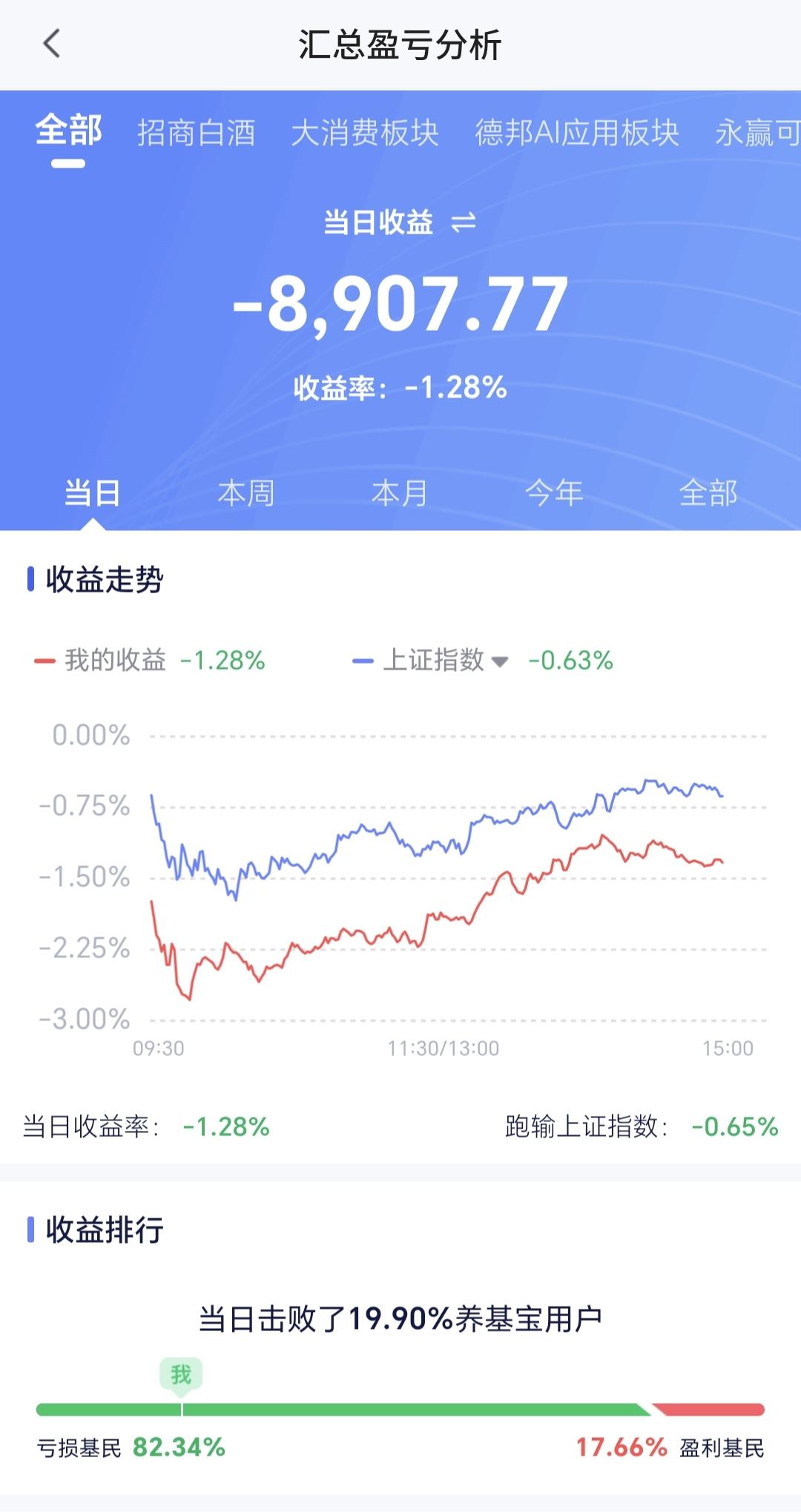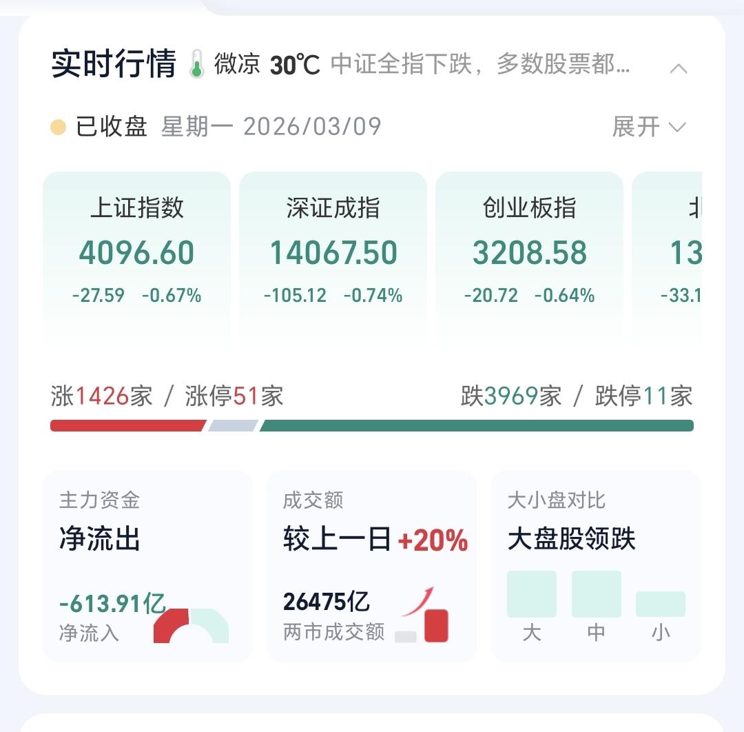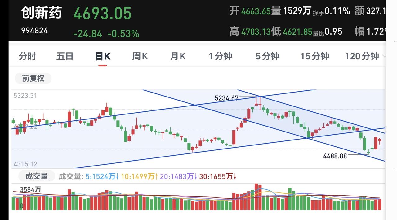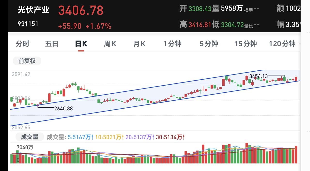 基金:最好的入场点在哪里 今天市场大幅度低开以后探底回升,收盘的时候三大指数都是小跌,创业板指下跌了0.64%,收于3208点,上证指数下跌了0.67%,收于4096点。 整个股票市场,上涨1426家,下跌3969家,涨停51家,跌停11家,上涨家数少于下跌家数。 持有的基金中,下午收盘的时候,估值盈利金额最大的三个板块是:新能源汽车板块,先进制造板块,AI应用板块,估值亏损金额最大的三个板块是:证券板块,创新药板块,芯片半导体板块,估值整体亏损了8907元。 整个基金市场,上涨2401家,下跌17266家,上涨幅度超过5%的2家,没有下跌幅度超过5%的7家。 图10是今天板块的上涨排行榜,上涨幅度最大的三个板块是:煤炭板块,光伏板块,储能板块,图11是今天板块的下跌排行榜,下跌幅度最大的三个板块是:交通运输板块,cpo板块,通信板块,图12是今天基金的加仓和减仓人数,加仓57477368人,减仓15008305人,加仓人数超过了减仓人数。 整个市场主力资金净流入最多的三个板块是:计算机板块,人工智能板块,信息安全板块,主力资金净流出最多的三个板块是:国企板块,高端制造板块,蓝筹策略板块。 1:今天两市累计成交26475亿,相比于上周五放量了20%,主力资金净流出613亿。 2:收盘的时候五天线位置是4106点,收盘点位4096点,收在五天线之下,明天继续观察能不能站上五天线。 3:看下面的截图4,这是上证指数日K线图,许多人讲今天收了一个大长腿,问这个大长腿的情况之下要不要进场?我认为:大长腿需要出现在相对的底部区域,震荡调整一段时间以后,出现的大长腿才有一定的作用,大长腿还需要有一定的阳线实体,今天的大长腿是一个阴线,开盘点位4098点,收盘点位4096点,所以,今天的这个大长腿不符合要求,也就是今天这个大长腿虽然比较长,但腿比较粗,也比较黑,并不是我喜欢的那种大长腿。 4:光伏板块今天是上涨的,收盘的时候估值上涨了1.48%,这是连续第三个交易日上涨,持有人数在所有板块当中排名第13位。 光伏板块日线级别处于上涨通道中,今天的最低也是下跌到了上涨通道的下轨线上,但还是距离上涨通道的下轨线比较近,近期观察会不会跌破这个上涨通道的下轨线,只要能够保持在这个上涨通道内,短线持有的人都可以继续持有,只要跌破了这个上涨通道的下轨线,短线持有的人就需要注意风险。 光伏板块周线级别也是处于上涨通道中,现在距离周线级别上涨通道下轨线还有一段空间,小幅度的下跌都破坏不了当前的上涨趋势,只要保持在周线级别上涨趋势中,长线持有的人都可以继续持有。 5:创新药板块日线级别处于短期下跌通道中,近期的小幅度涨跌都改变不了这个板块日线级别短期的下跌趋势,想进场的人需要耐心等待上涨突破这个短期下跌通道上轨线的时候,再考虑可不可以进场。 创新药板块周线级别处于上涨趋势破位中,在形成新的周线级别下跌通道之前,先观察日线级别的情况,长线进场的人也参考日线级别的情况。 6:脑机接口板块日线级别也是处于短期下跌通道中,这个板块的进场也是需要等待,是需要等待上涨突破日线级别短期下跌通道上轨线的时候,才可以考虑要不要进场。 许多人不明白,为什么某个板块上涨突破了下跌通道上轨线,还要考虑要不要进场,这是因为某个板块是小环境,我们还要考虑市场因素,整个市场是大环境,我们最好的入场点是板块与市场同时共振向上,也就是小环境与大环境同时转好的时候,那个时候的把握性是最高的。 比如说某个板块已经突破了下跌通道的上轨线,这个板块有可能会转变为上涨趋势,但这个时候的大环境是向下的,这会抑制这个板块的上涨,也有可能会把这个新形成的上涨趋势改变,这就是小环境适应大环境,大环境改变小环境,这也是我每天都在讲大盘的主要原因。 花1秒钟点赞,花30秒钟评论,就是对我最大的支持,谢谢大家的支持。
