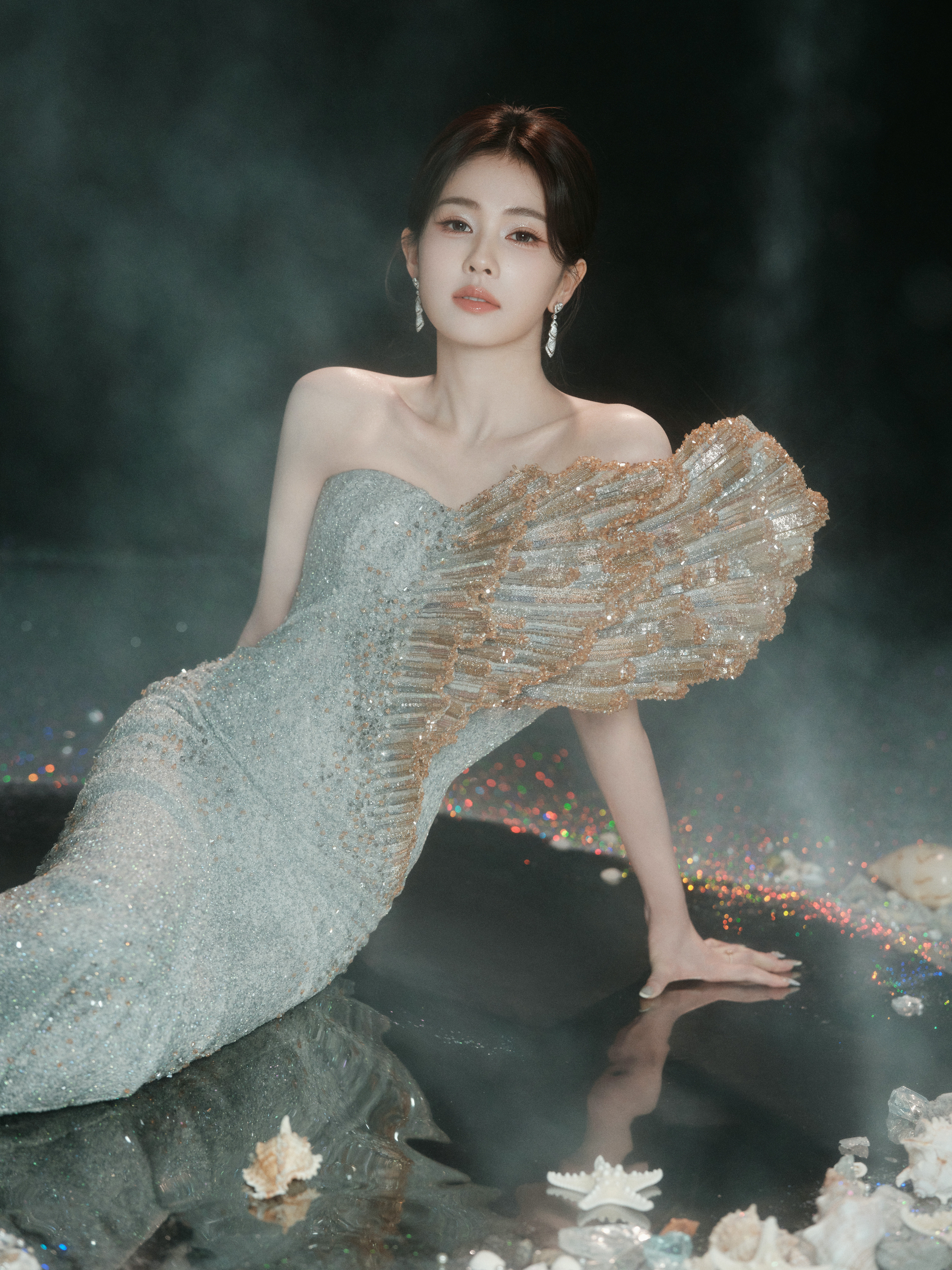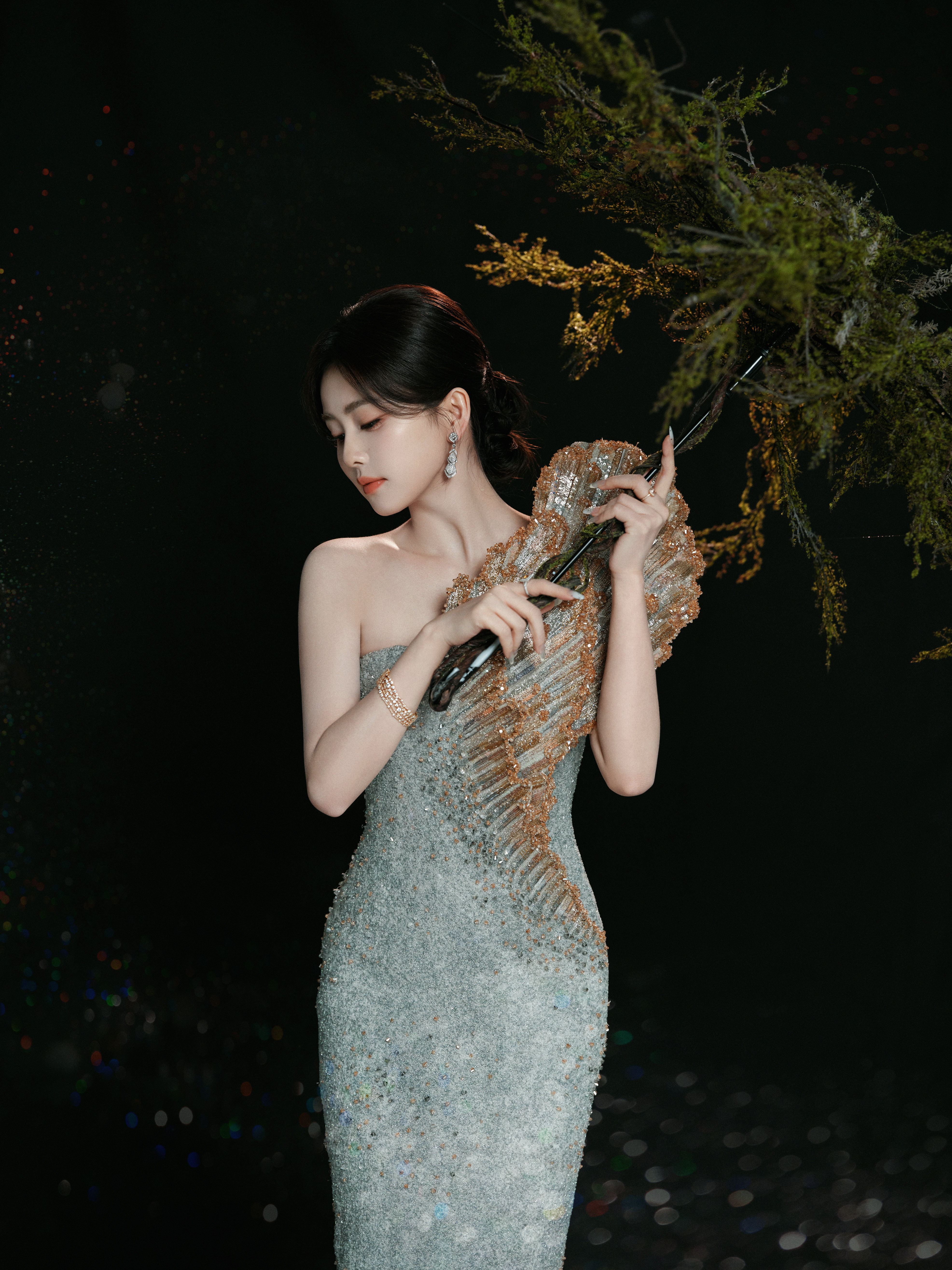 卢昱晓×2026电视剧品质盛典造型大片,身着一袭丝缎刺绣拖尾礼服,搭配C